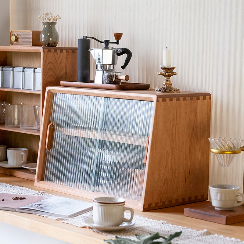 Eigentijdse stijl massief houten opbergkastje met glazen deuren