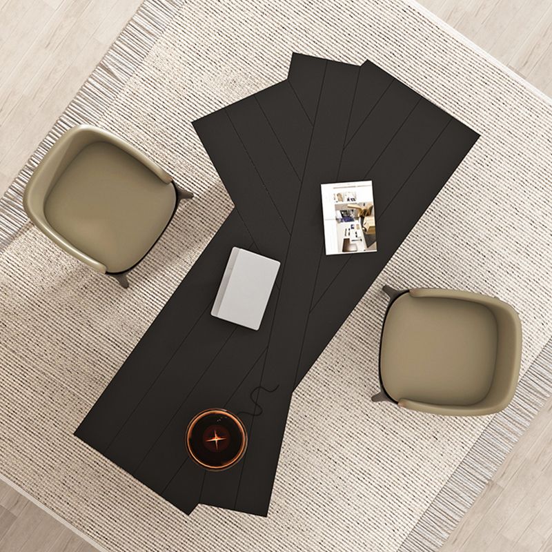 Hedendaagse stijl Wood Office Desk onregelmatige vorm Taakbureau in bruin/zwart