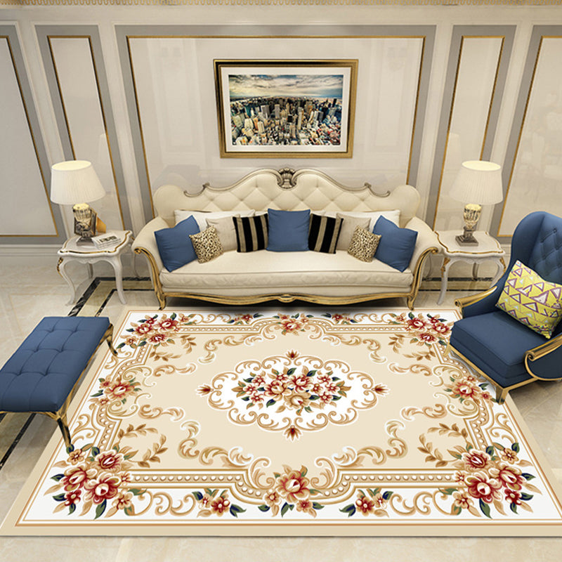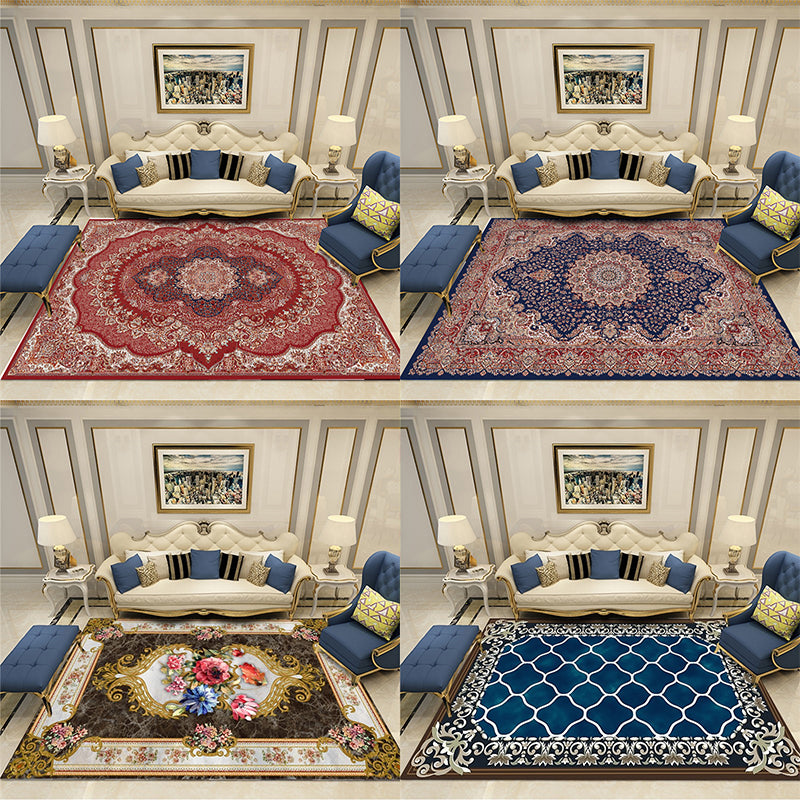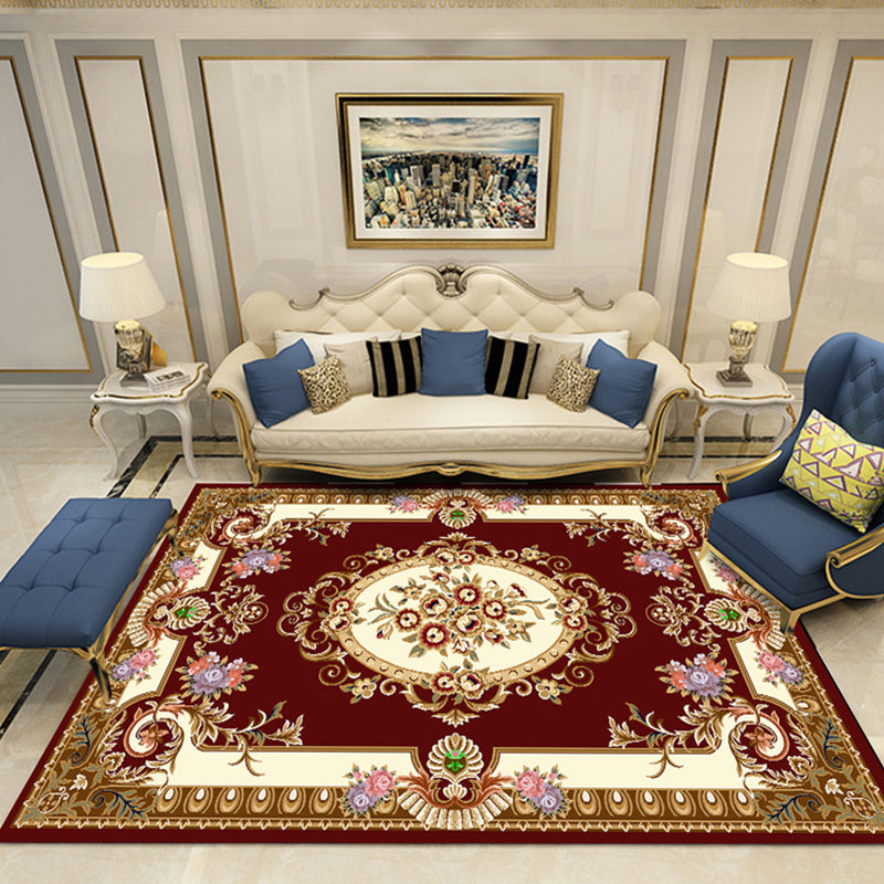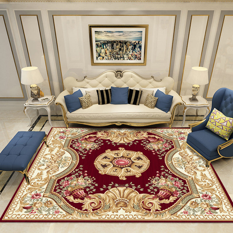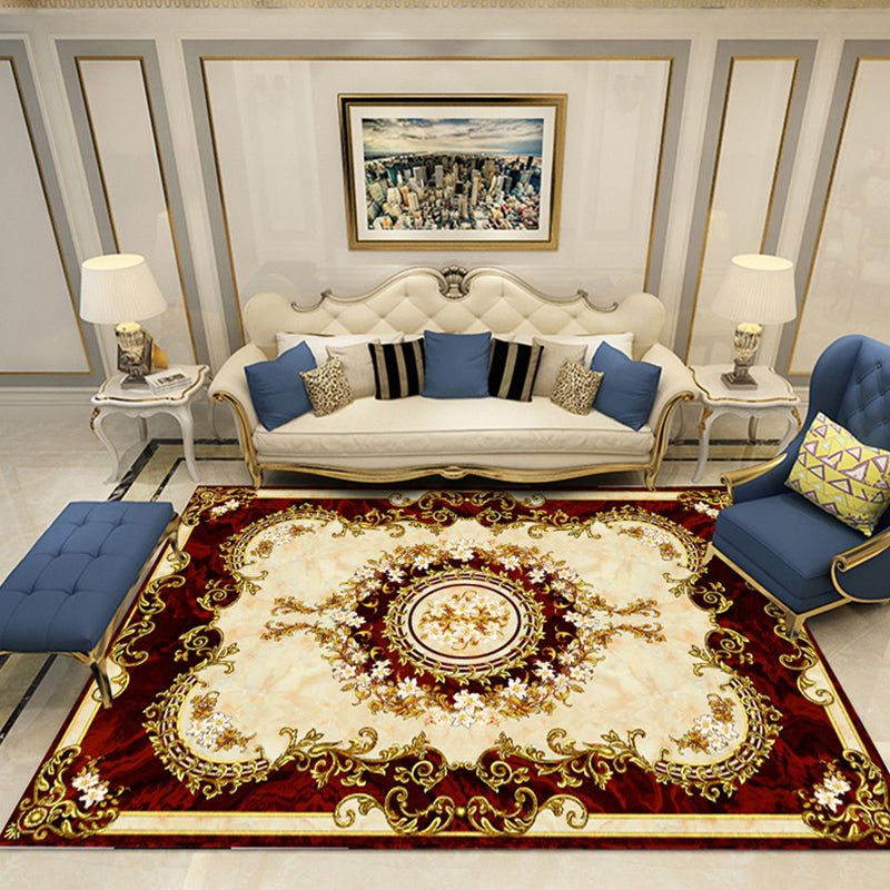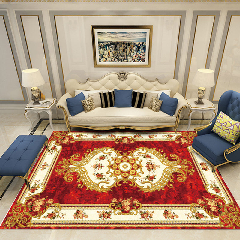 European Style Print Rug Multi Color Classic Carpet Polypropylene Washable Stain Resistant Non-Slip Backing Rug for Lounge Red-White Clearhalo 'Area Rug' 'Rugs' 'Shabby Chic' Rug' 2184863