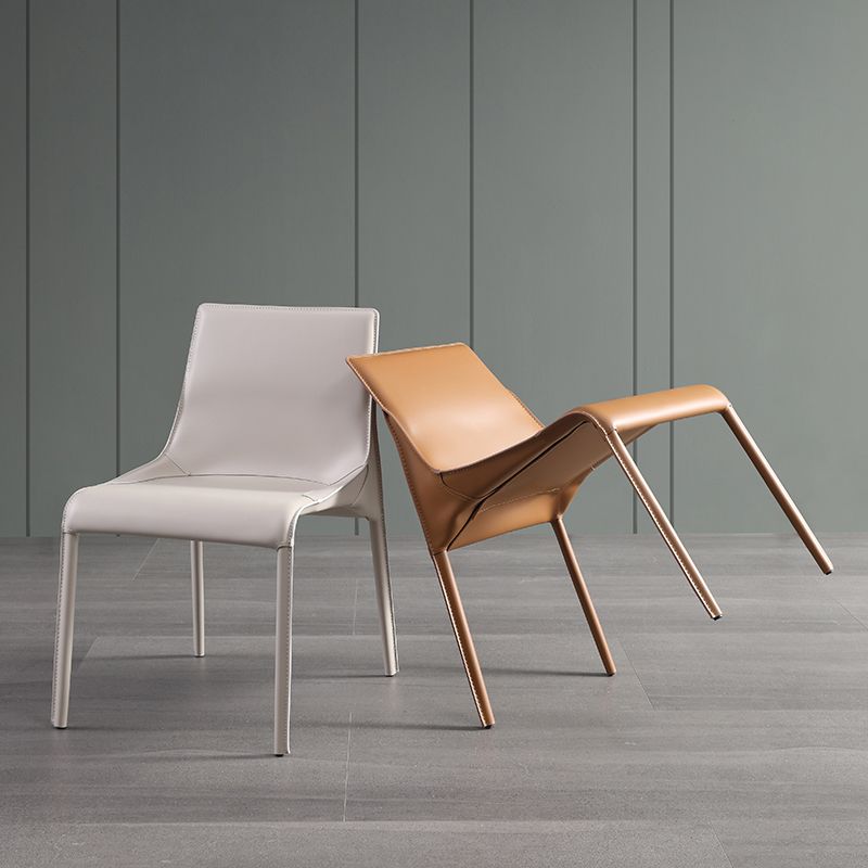 Faux lederen eigentijdse armloze stoel huis metalen eetkamerstoel