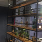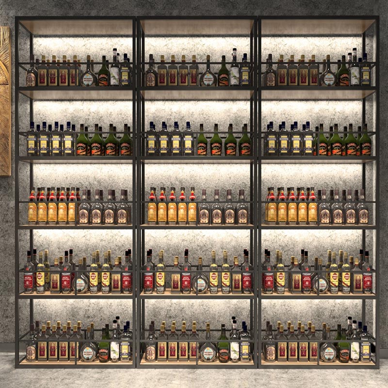 Vrijstaande moderne fles wijnrek zwart met plank fleshouder metaal