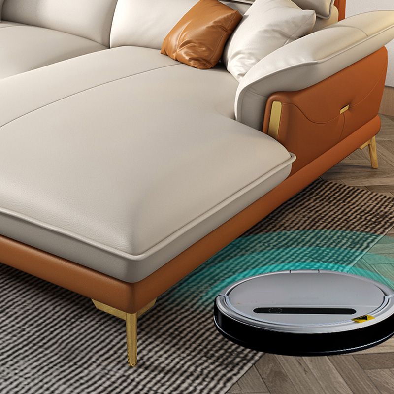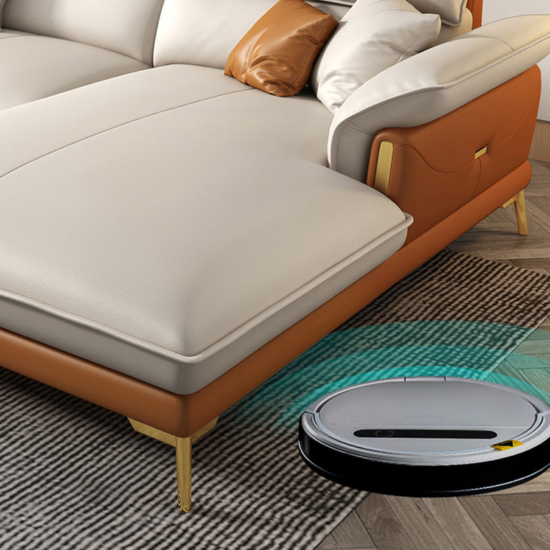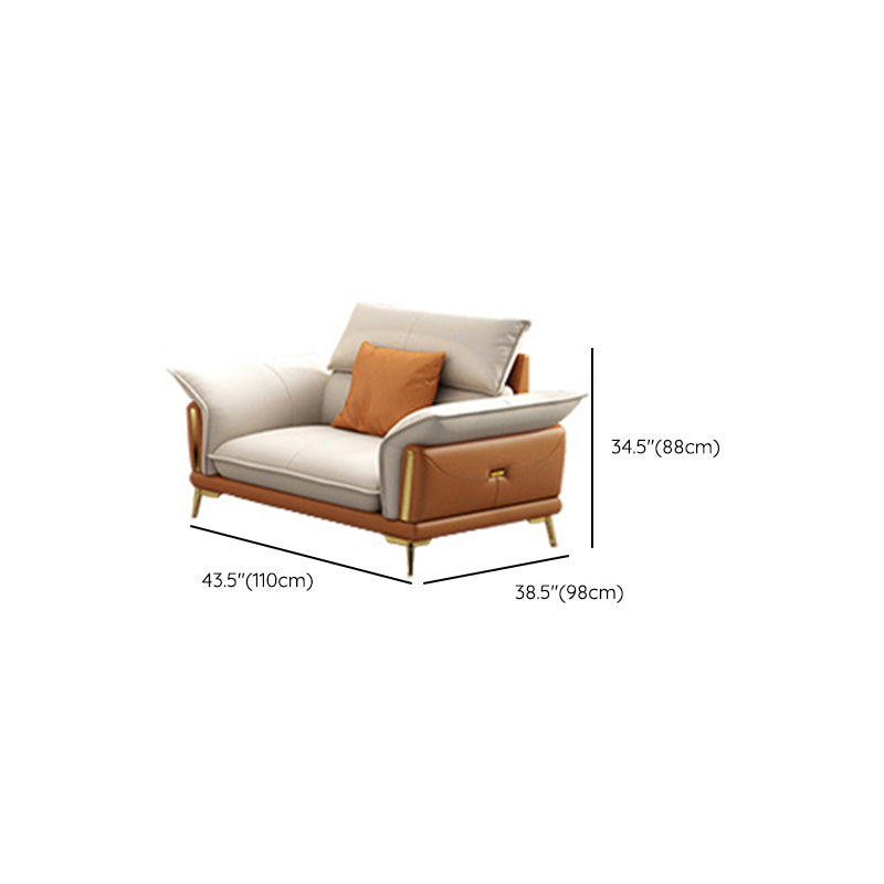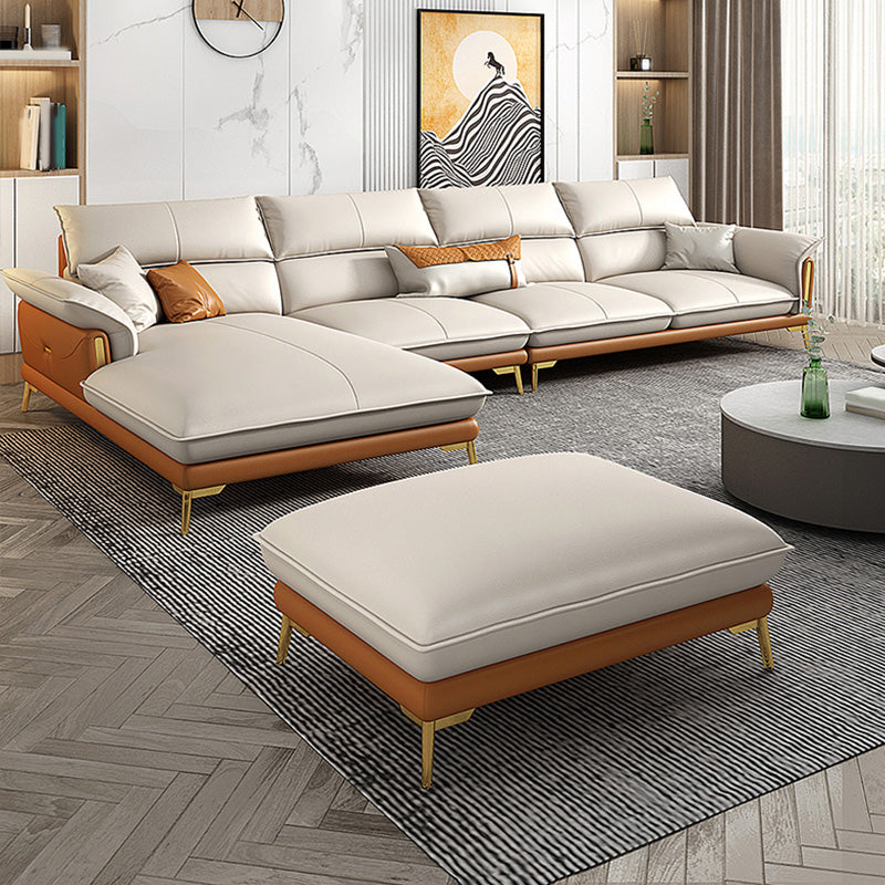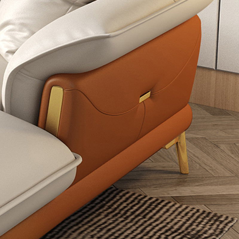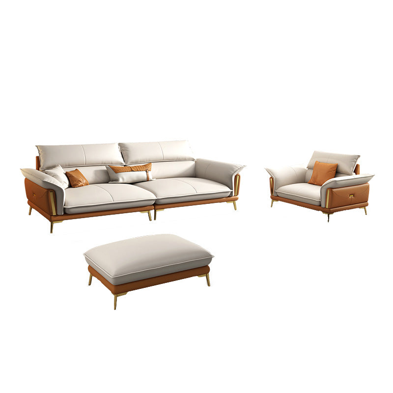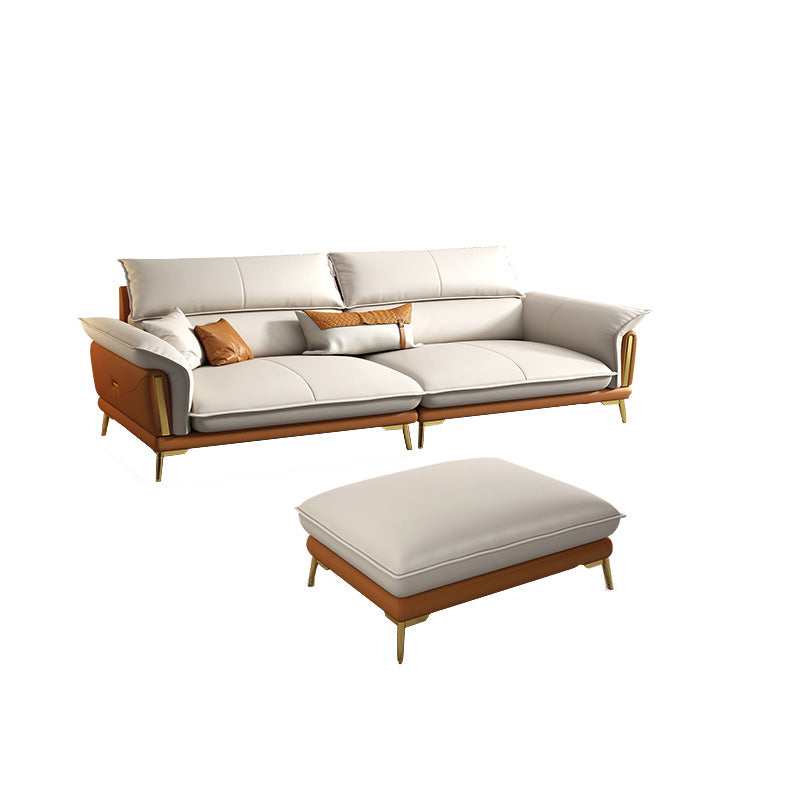 Glam lederen woonkamer zitplaatsen wijd uitlopende armkussens witte bank