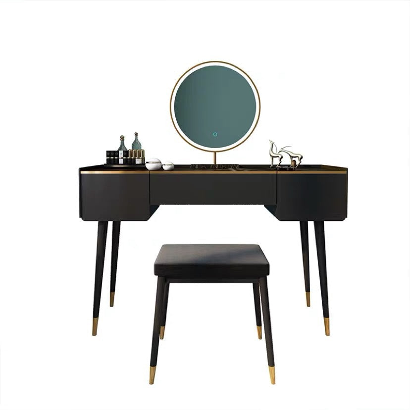 Glam houten framekrandtafel leisteen top ijdelheid met laden