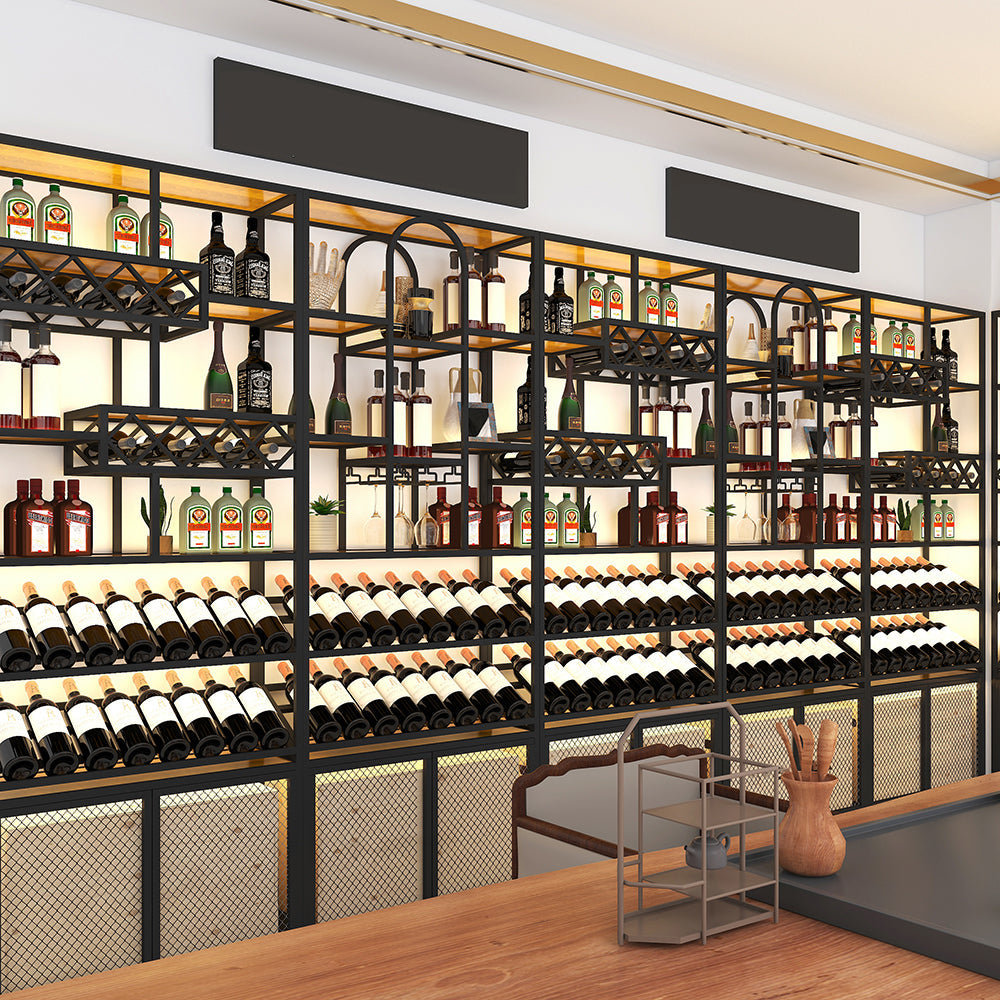 IJzeren vloer Wijnfles en glazen rek Industrieel wijnrekpakket