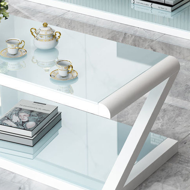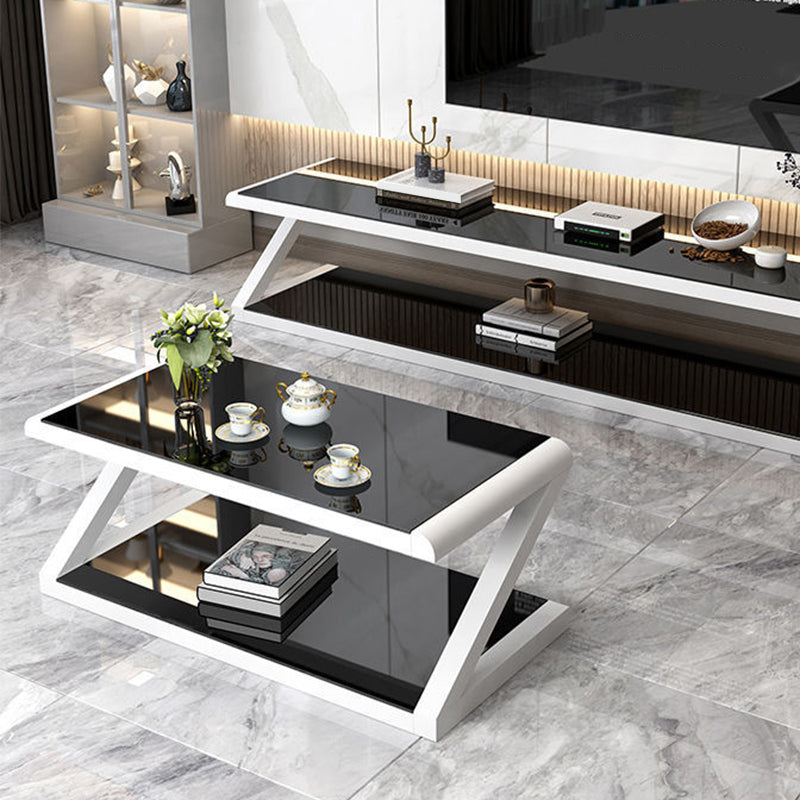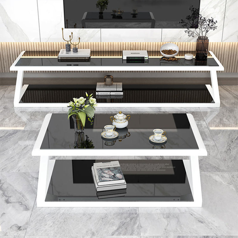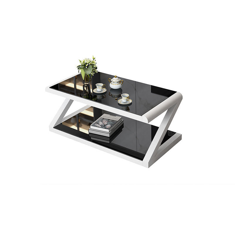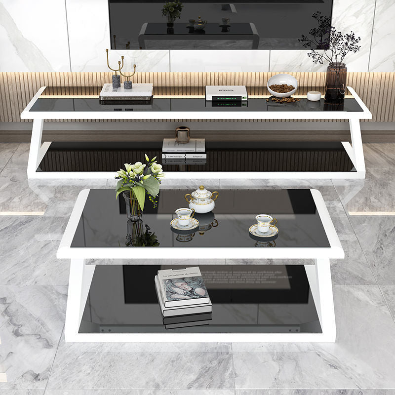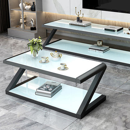 Metalen slee salontafel hedendaagse glazen top met opbergplank