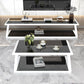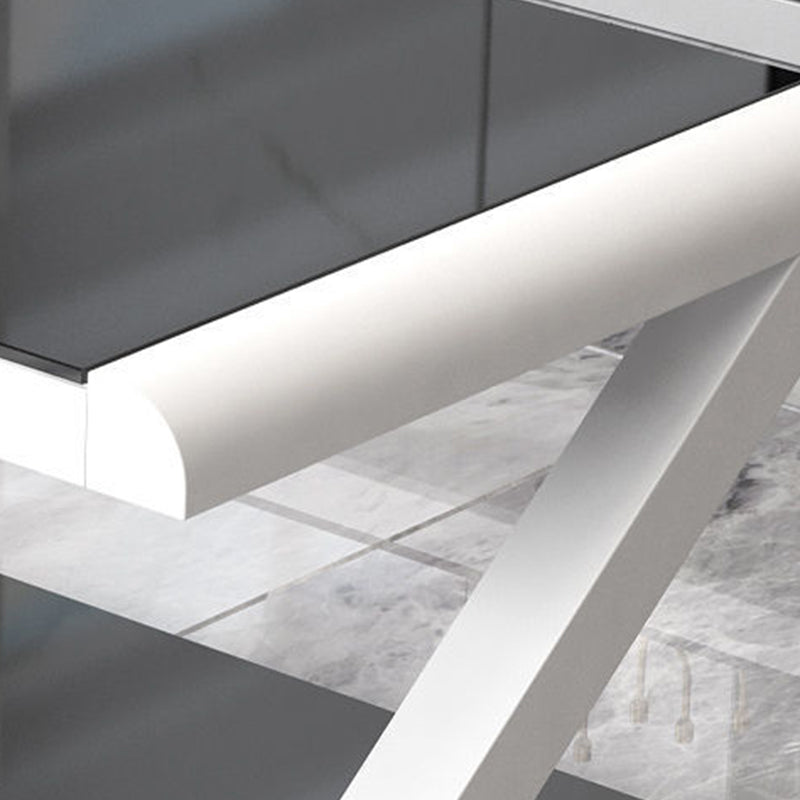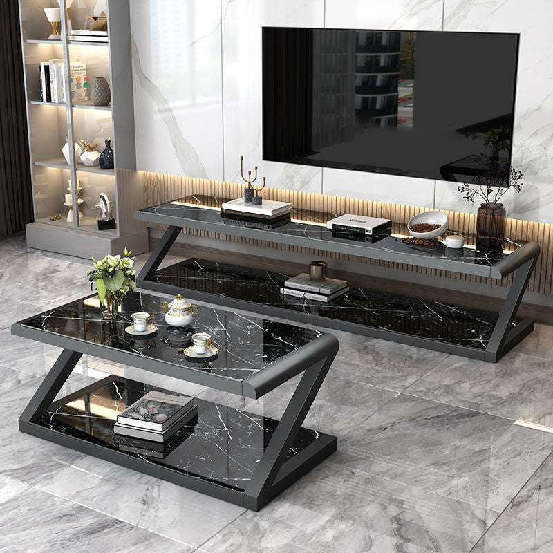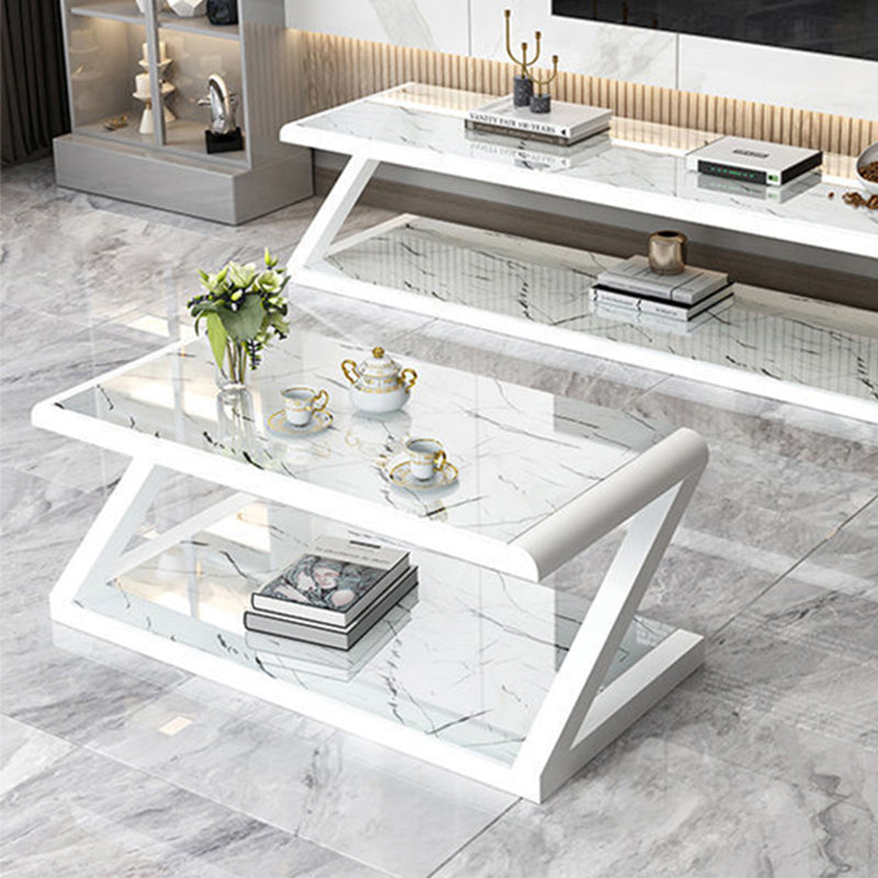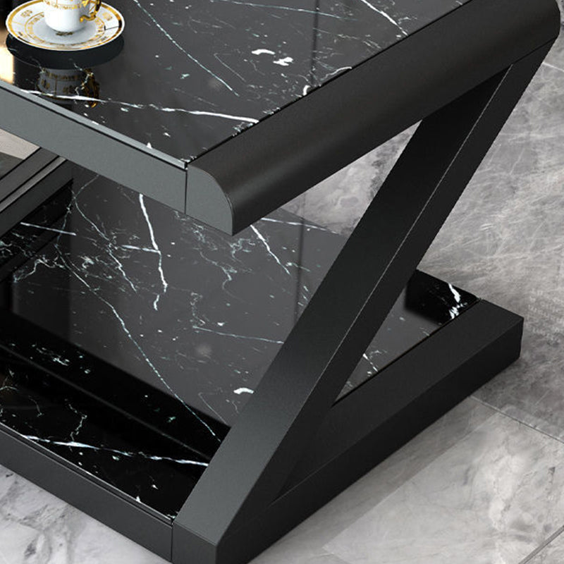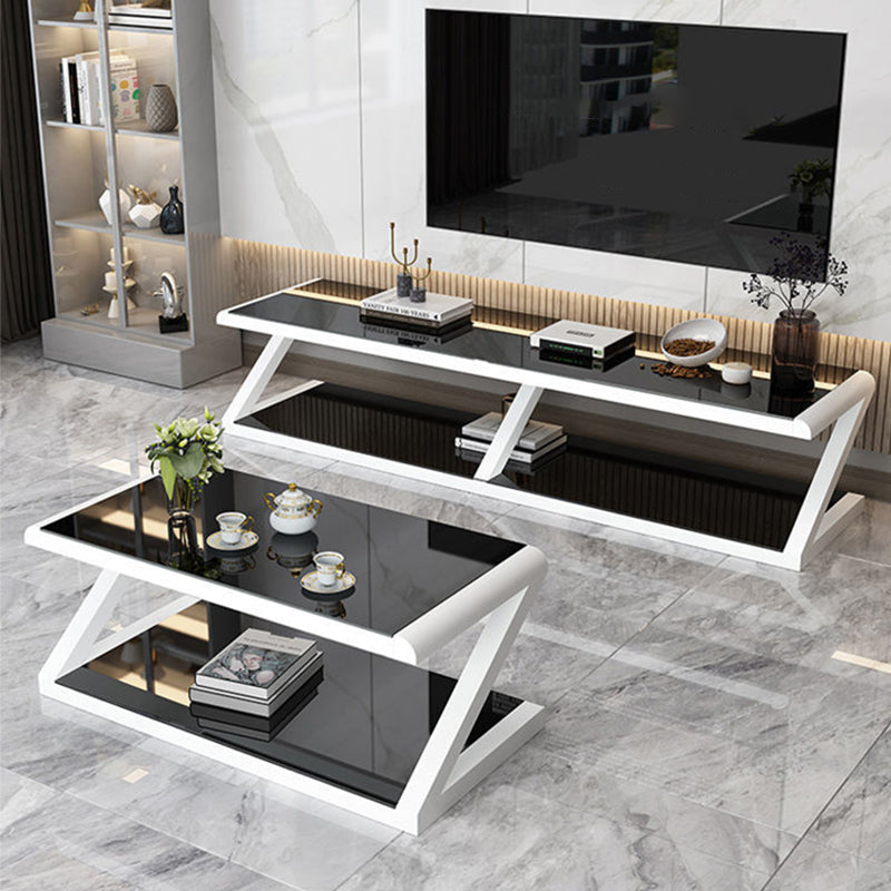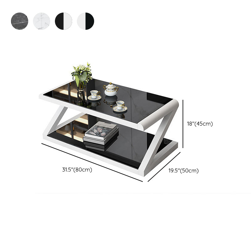 Metalen slee salontafel hedendaagse glazen top met opbergplank