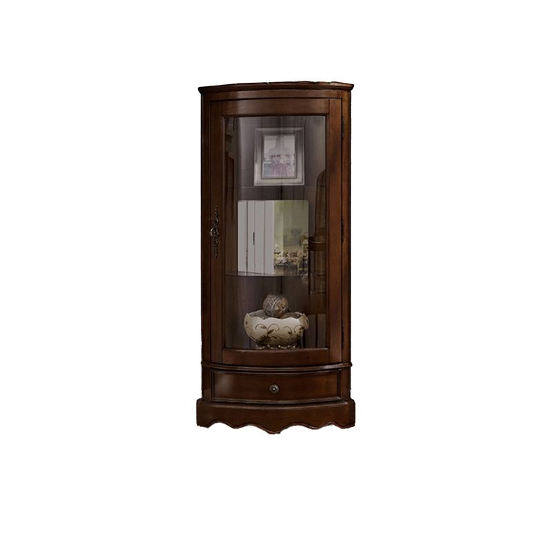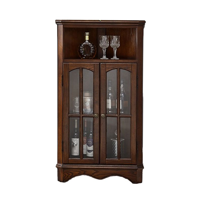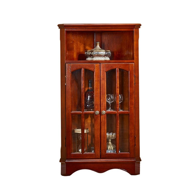 Midden-eeuwse moderne accentkast rubberhoutkast met glas in paniek