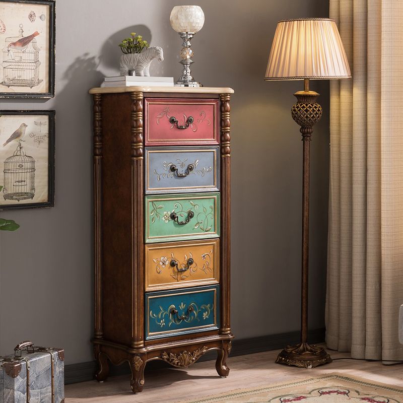 Midden-eeuwse moderne houten borst rechthoek accentkist met laden