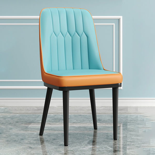 Moderne armloze rugleunkussenstoel met metalen benen voor woonkamer