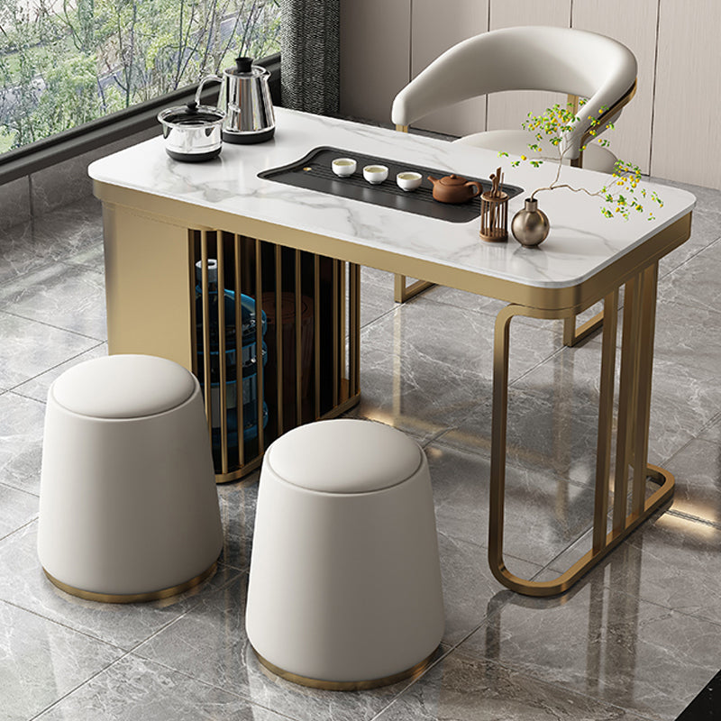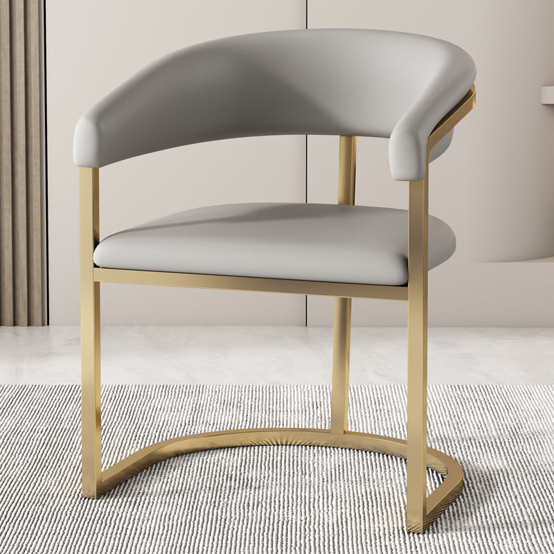 Moderne rugleuning armleuning kussenstoel met metalen basis voor eetkamer