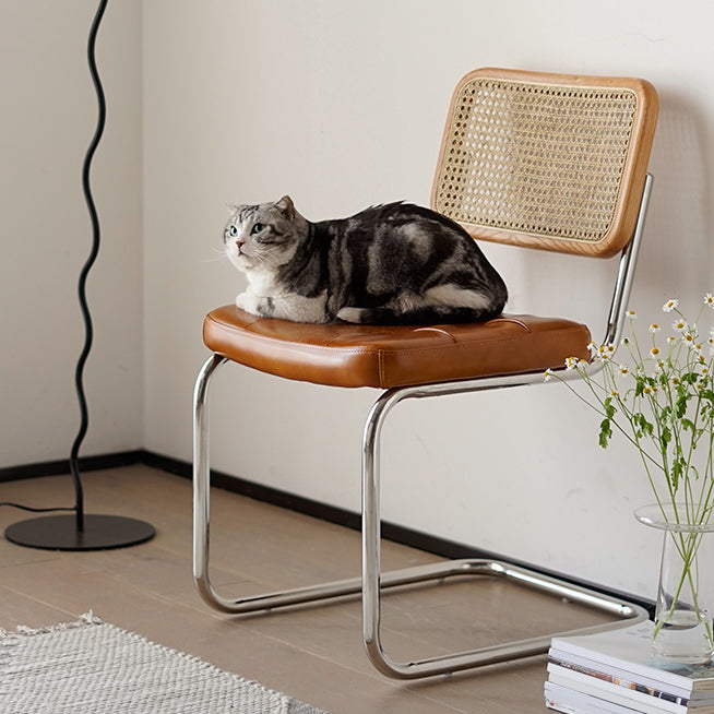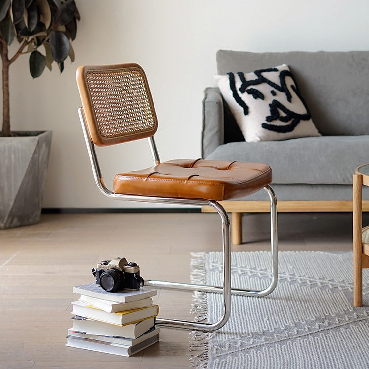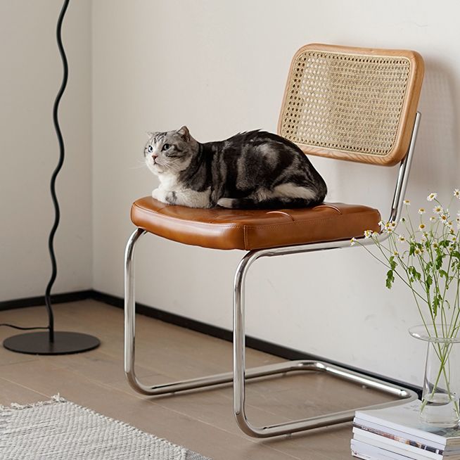 Moderne rugleuning kussenstoel met metalen basis voor eetkamer