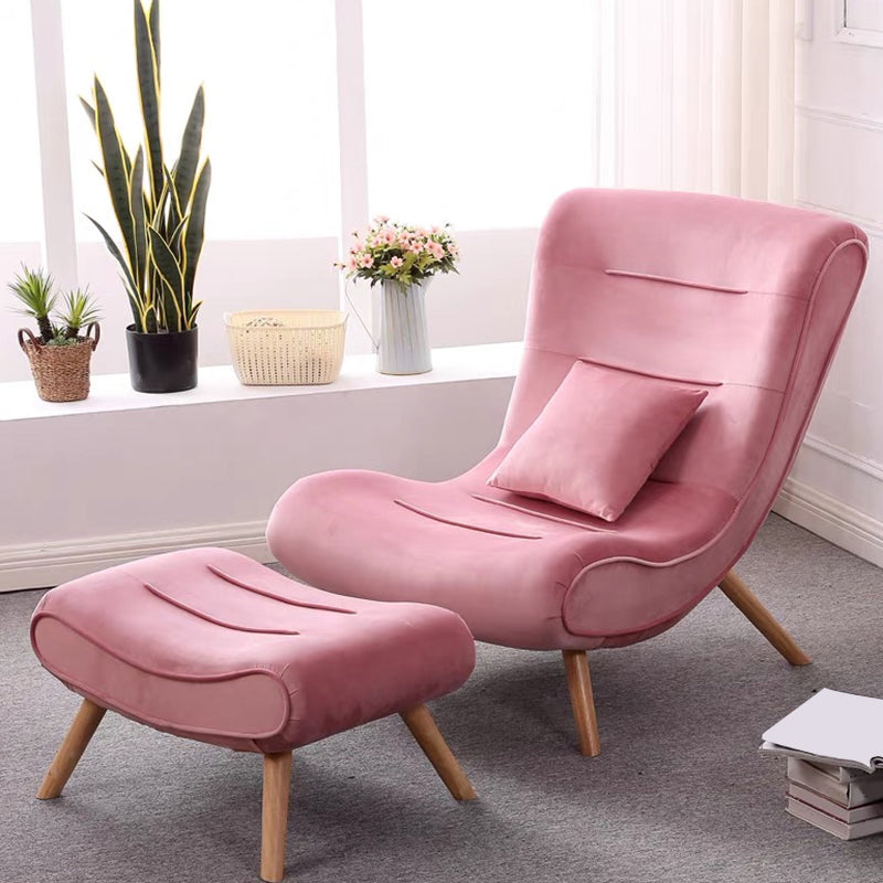 Moderne kussens rocker stoel massief houten frame spindel rocker stoel met poef