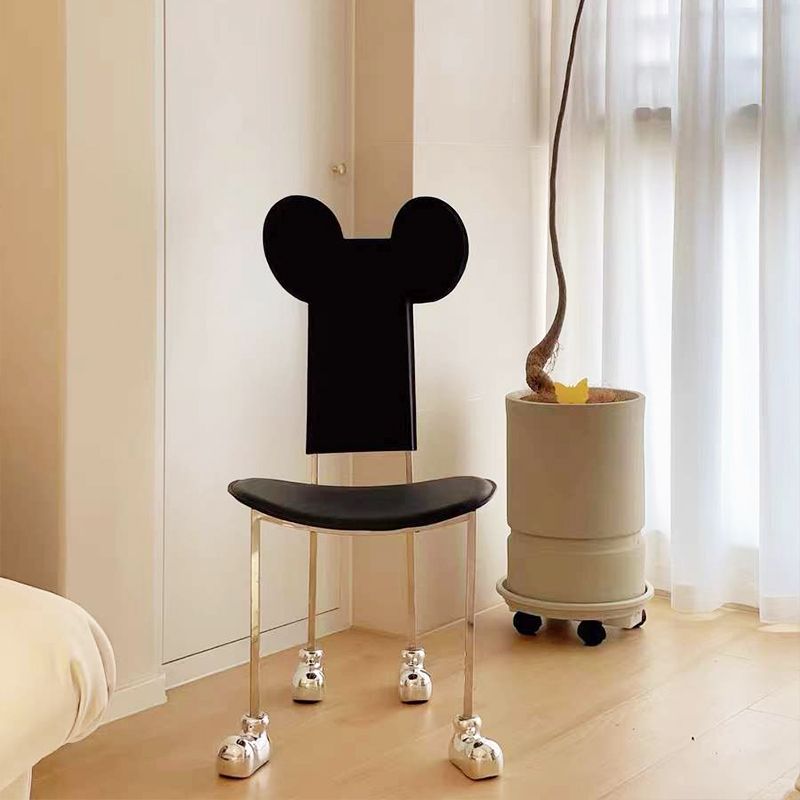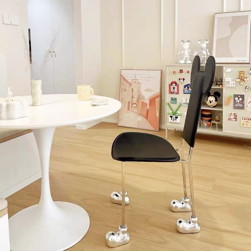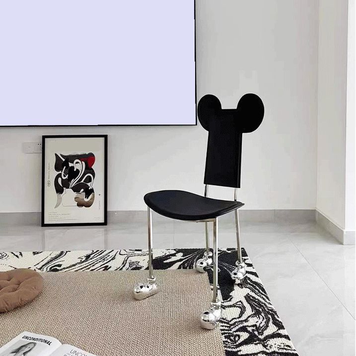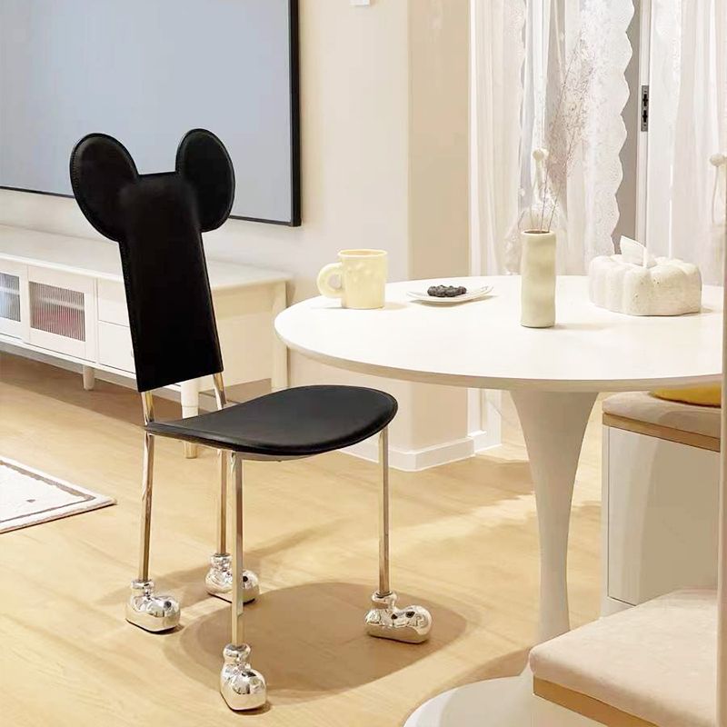 Moderne eetkamerstoel Leer Open achterkant stoel met roestvrijstalen basis