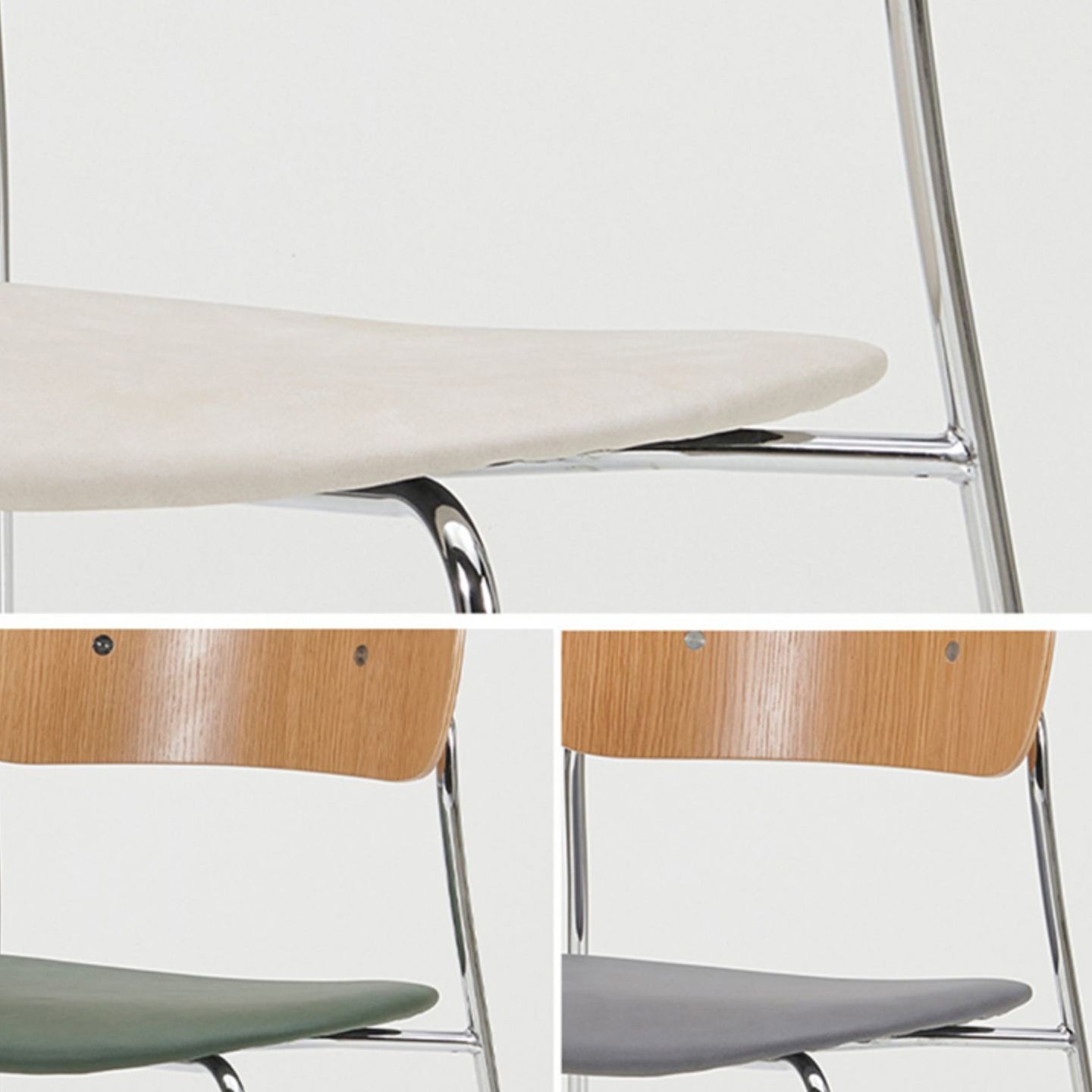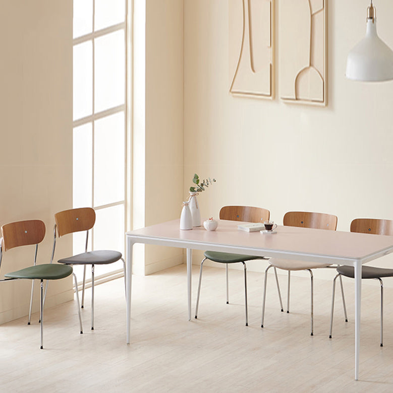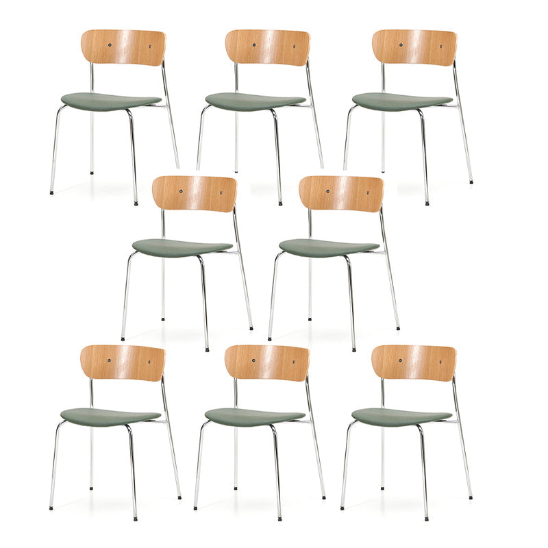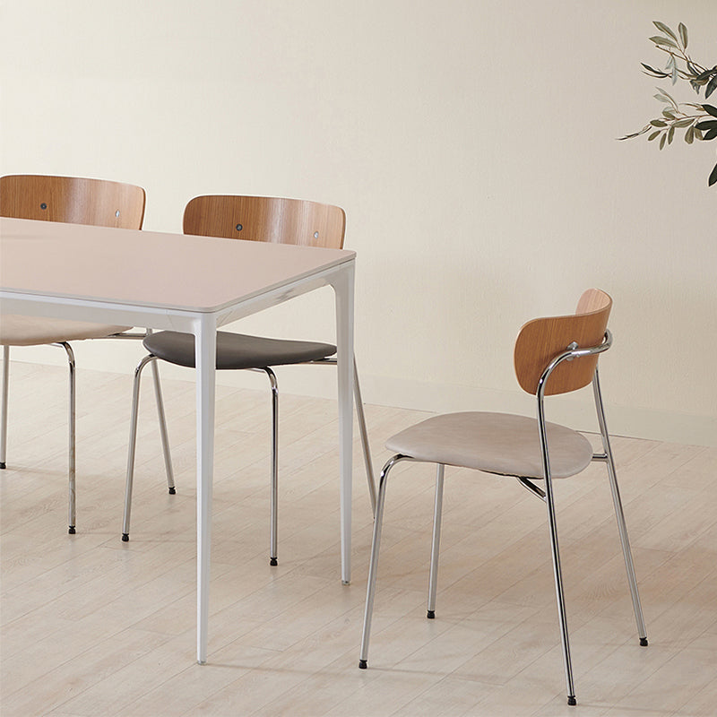 Moderne eetkamer open rug gestoffeerde zilveren been eetstoel