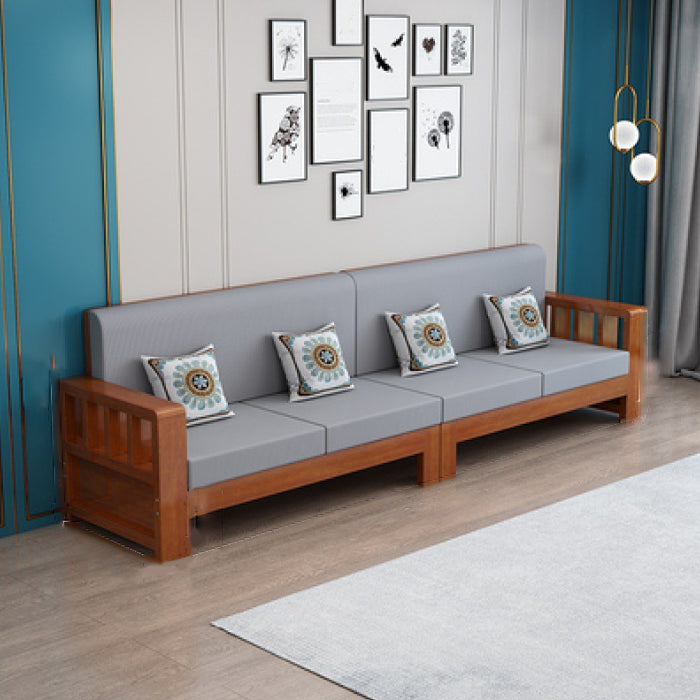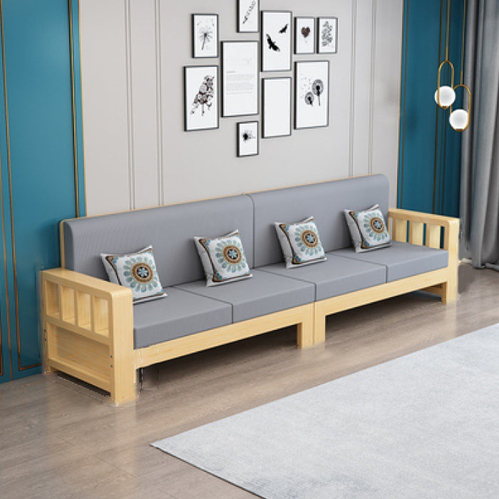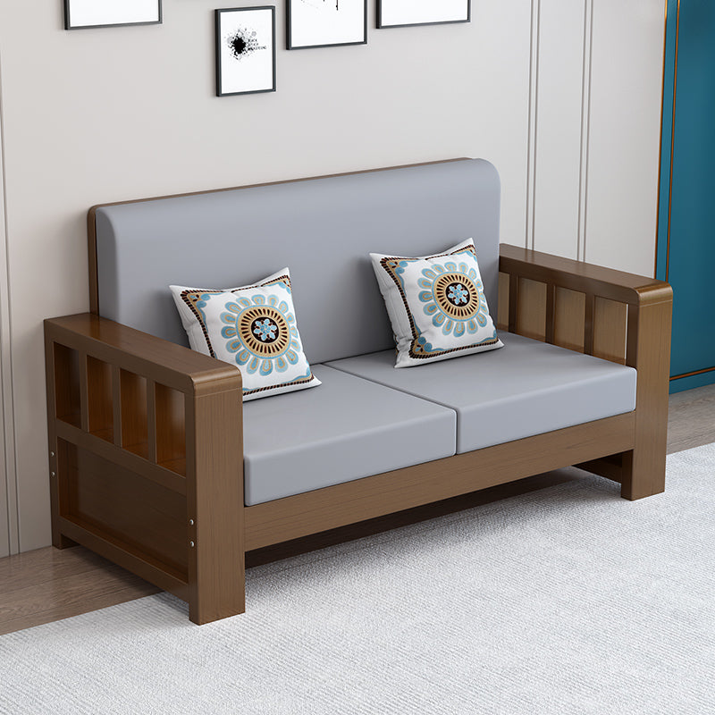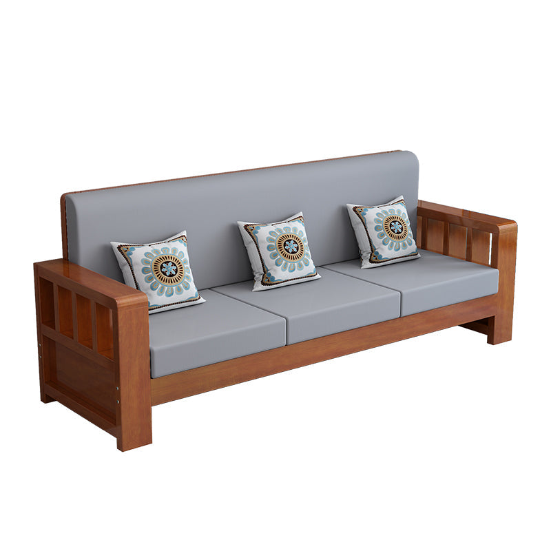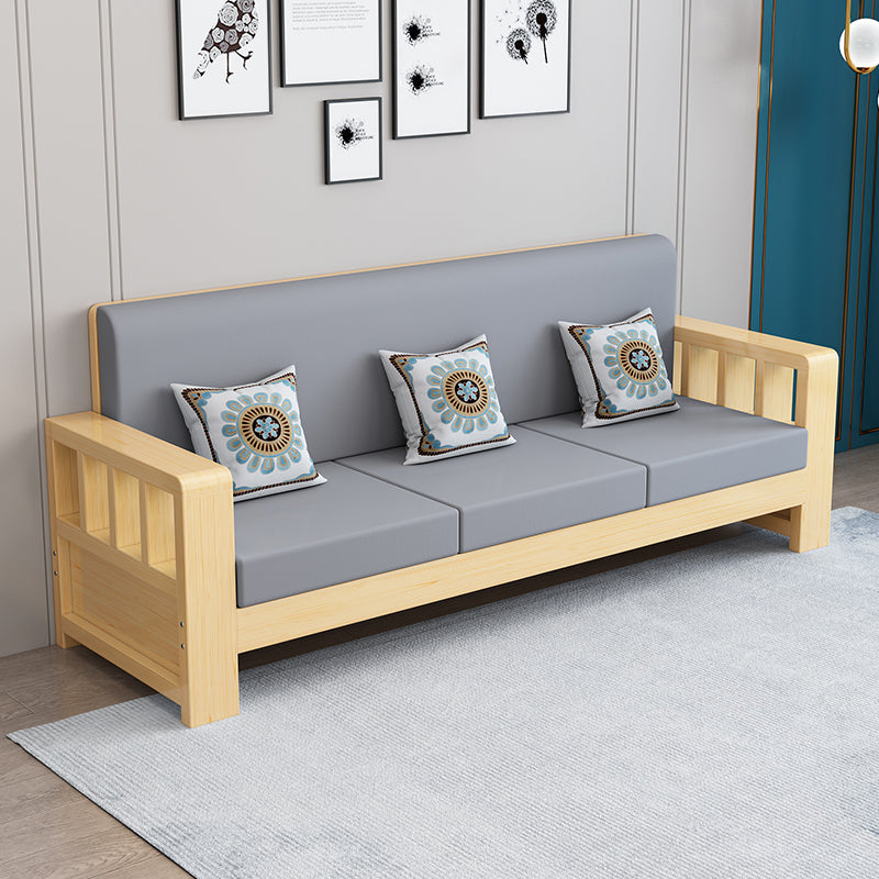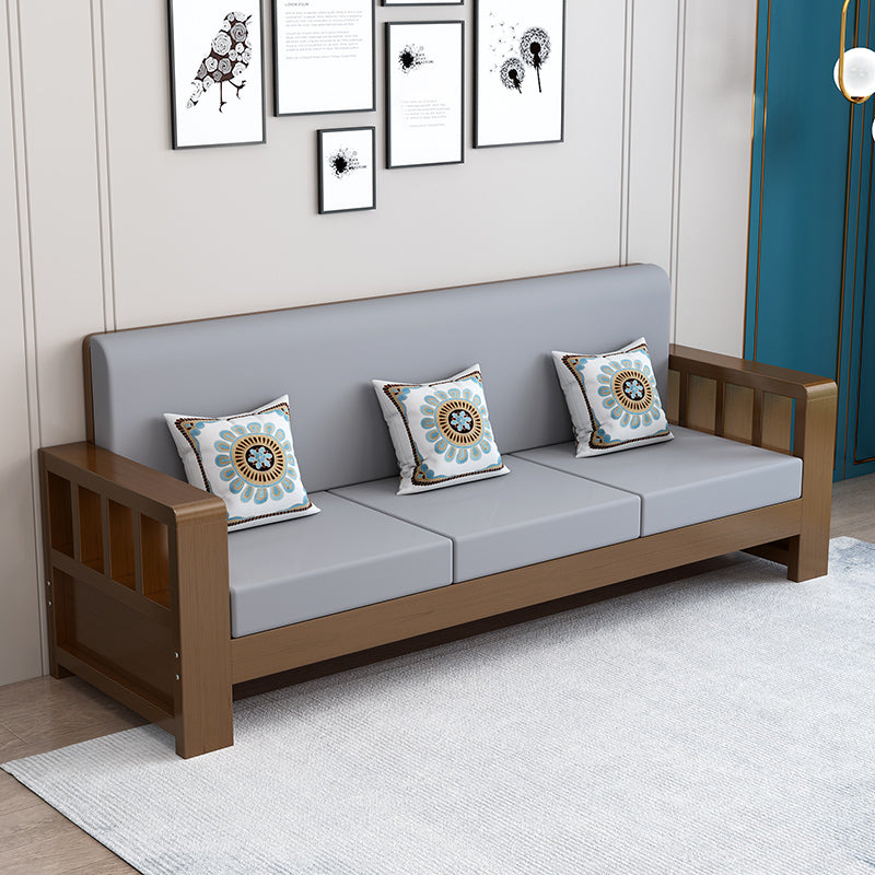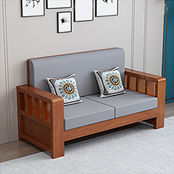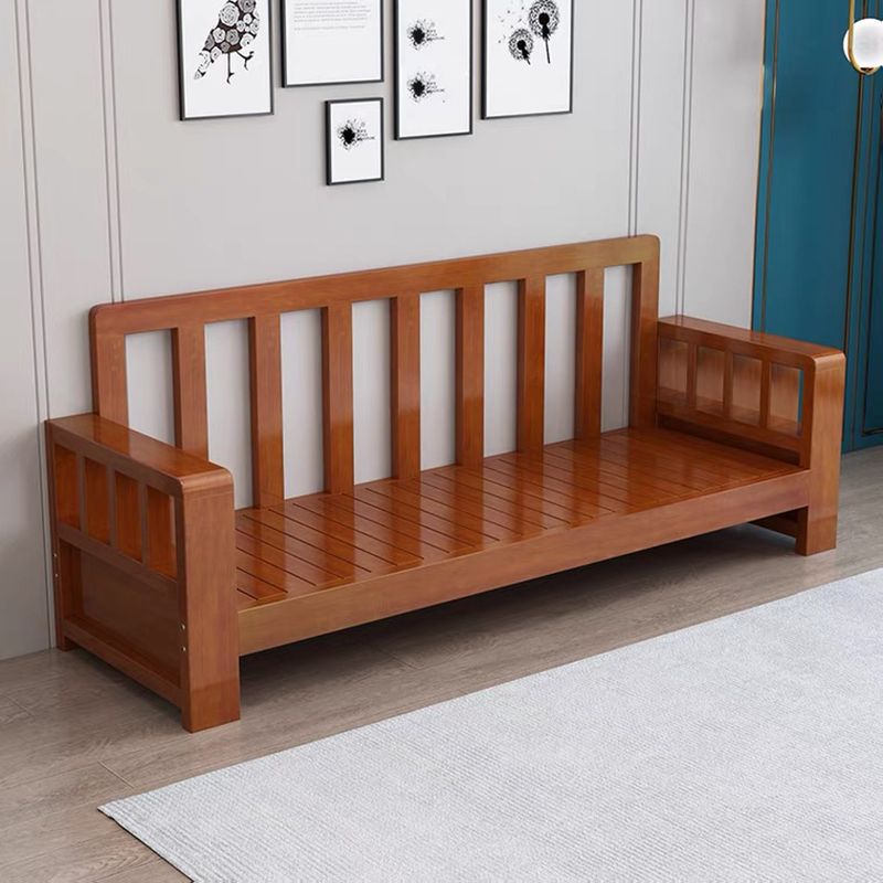 Moderne boerderijbank in massief hout met vierkante armen voor woonkamer