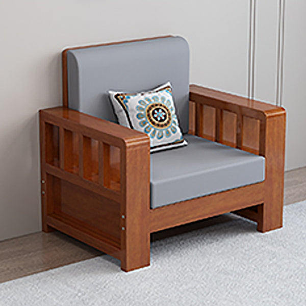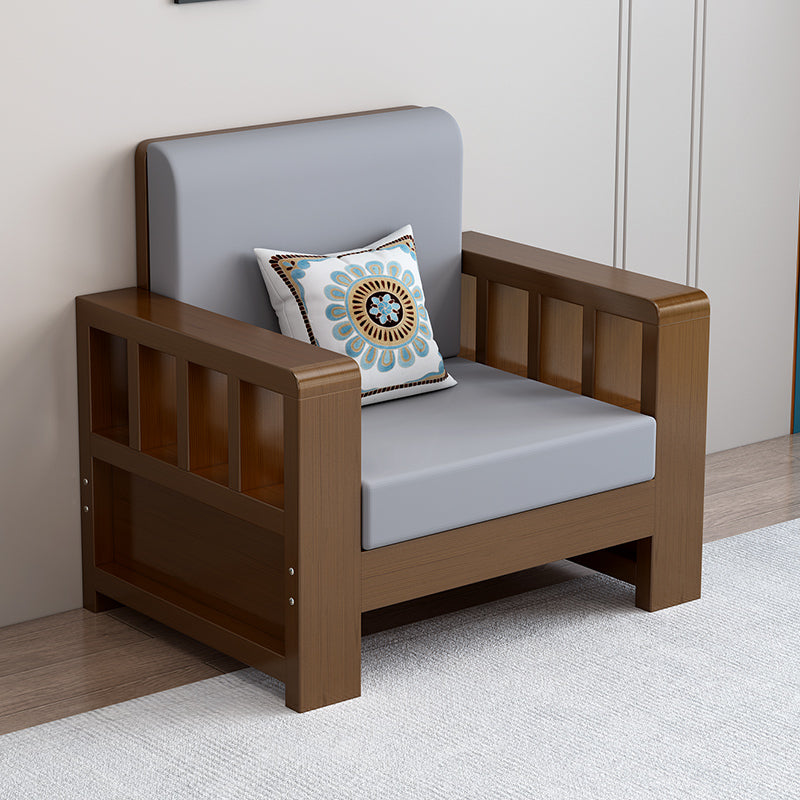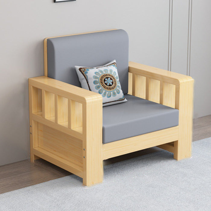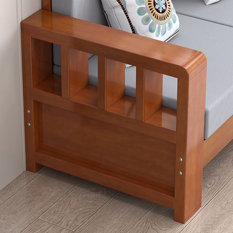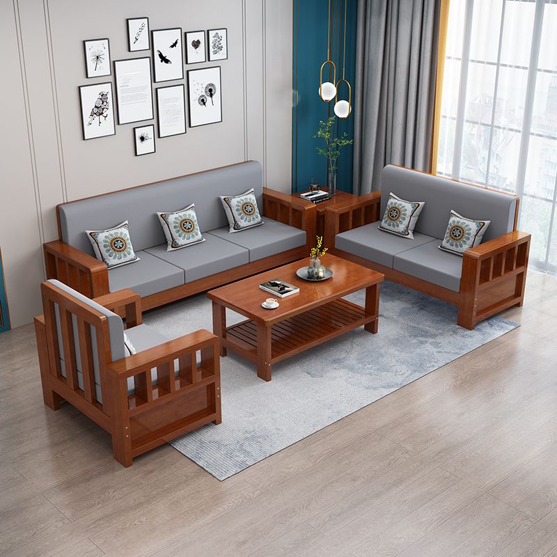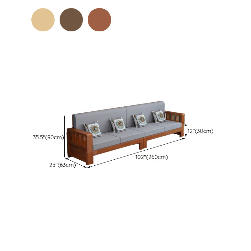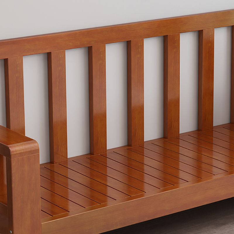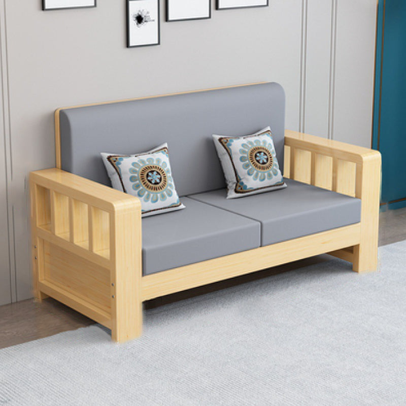 Moderne boerderijbank in massief hout met vierkante armen voor woonkamer