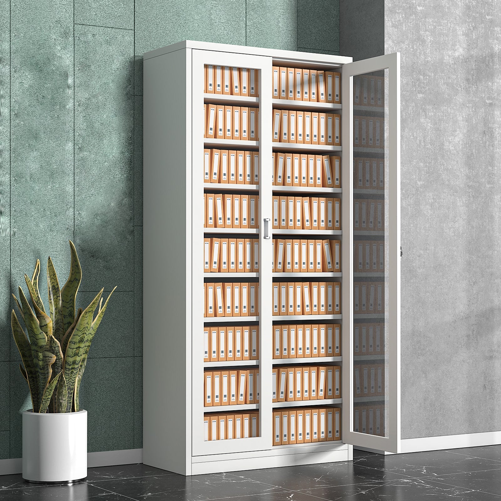 Moderne archiveringskast glazen deuren deurenkast met opslagplanken voor kantoor