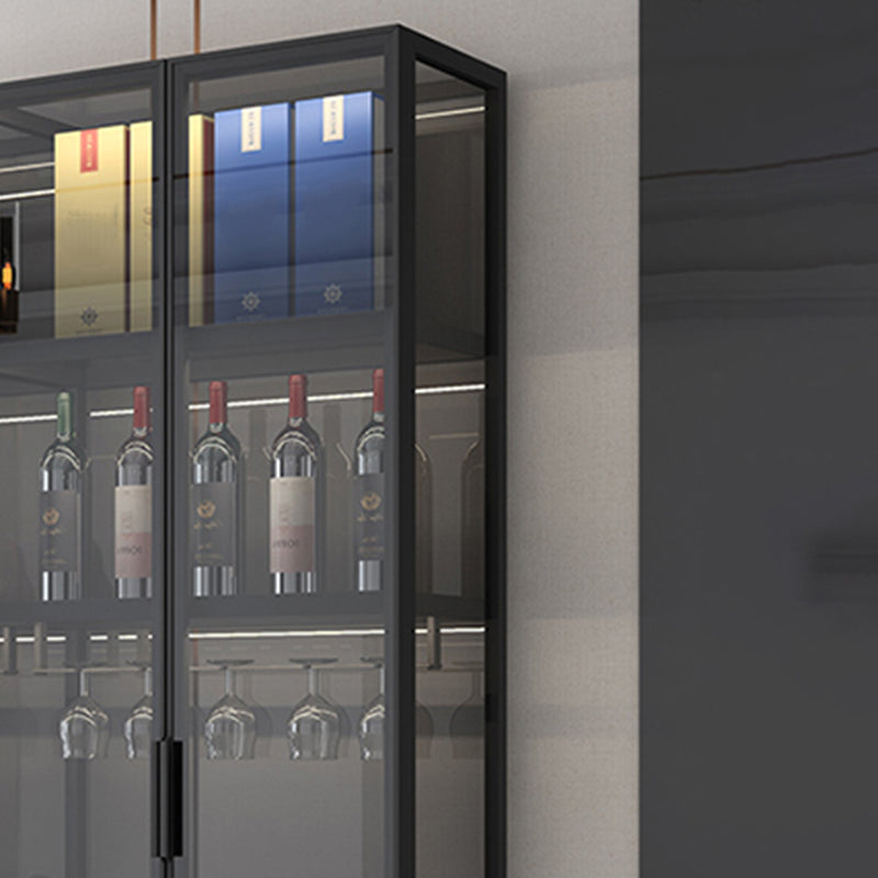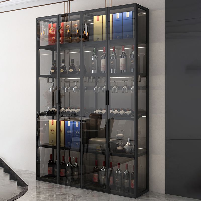 Moderne vrijstaande metalen stapelbare wijnhouderrek met opbergplanken