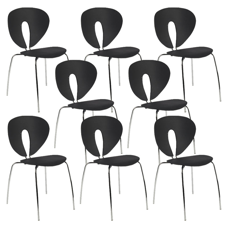 Moderne open rug plastic eetkamer zilveren been eetstoel