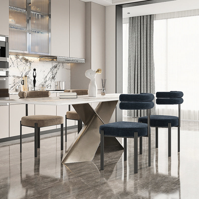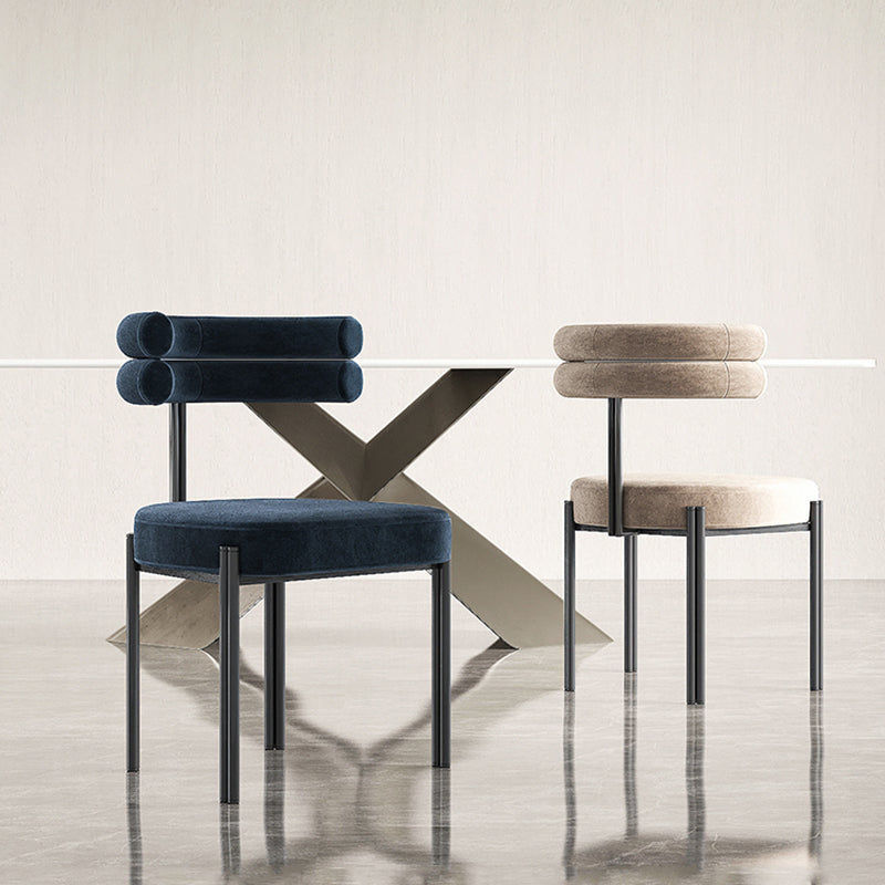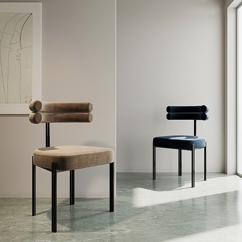 Moderne eenvoudige metalen zijstoel gestoffeerde eetkamerstoelen voor thuisgebruik