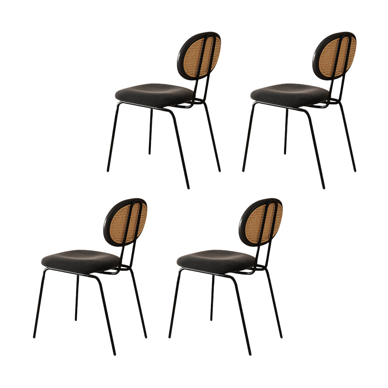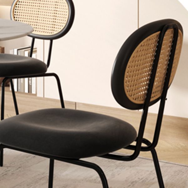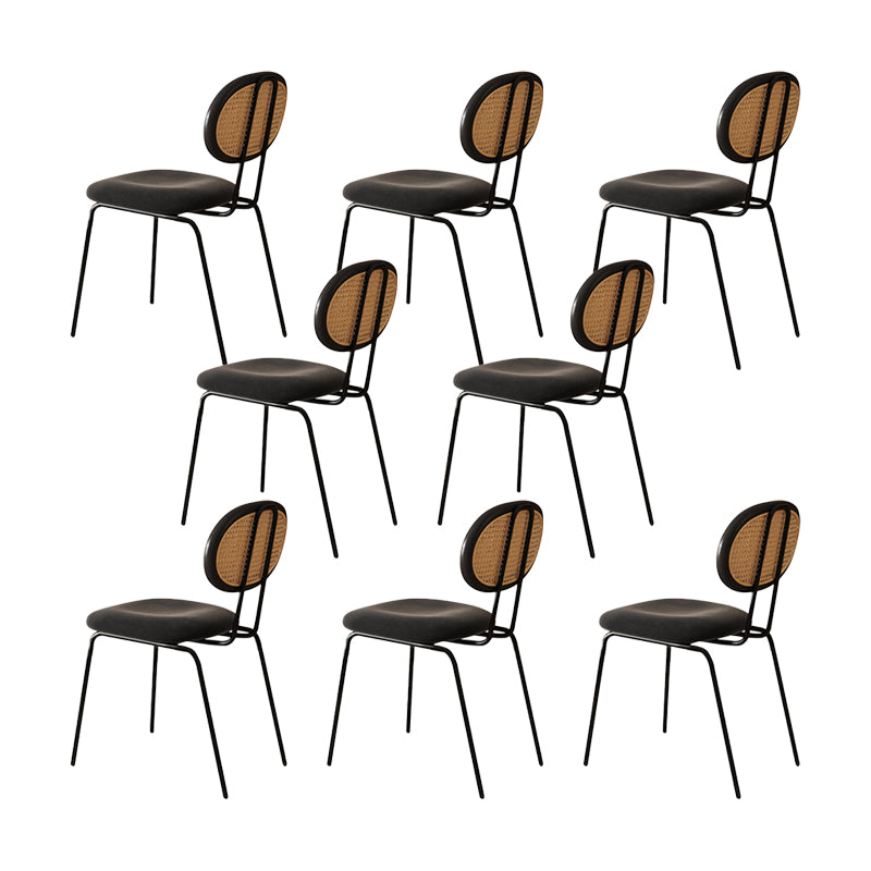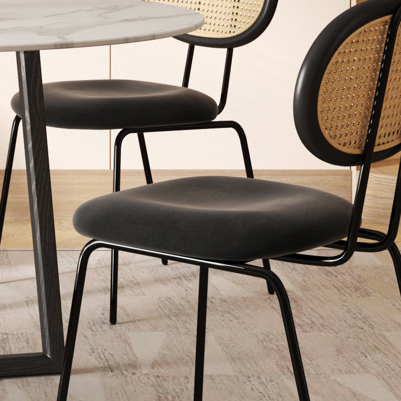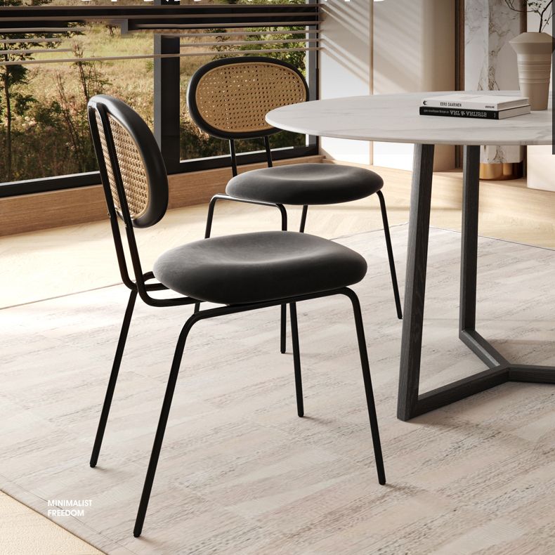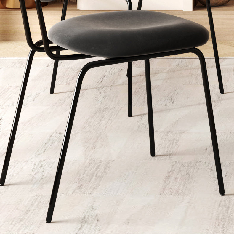 Moderne eenvoudige zijstoel gestoffeerde eetkamerstoel met metalen basis voor keuken