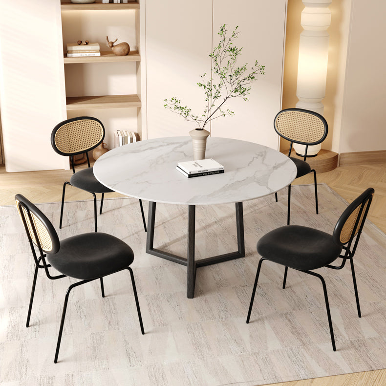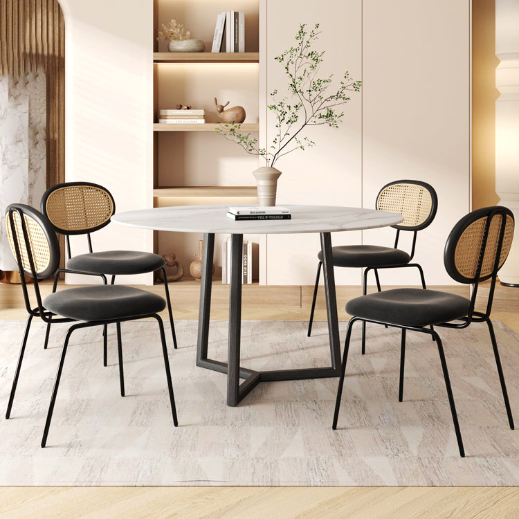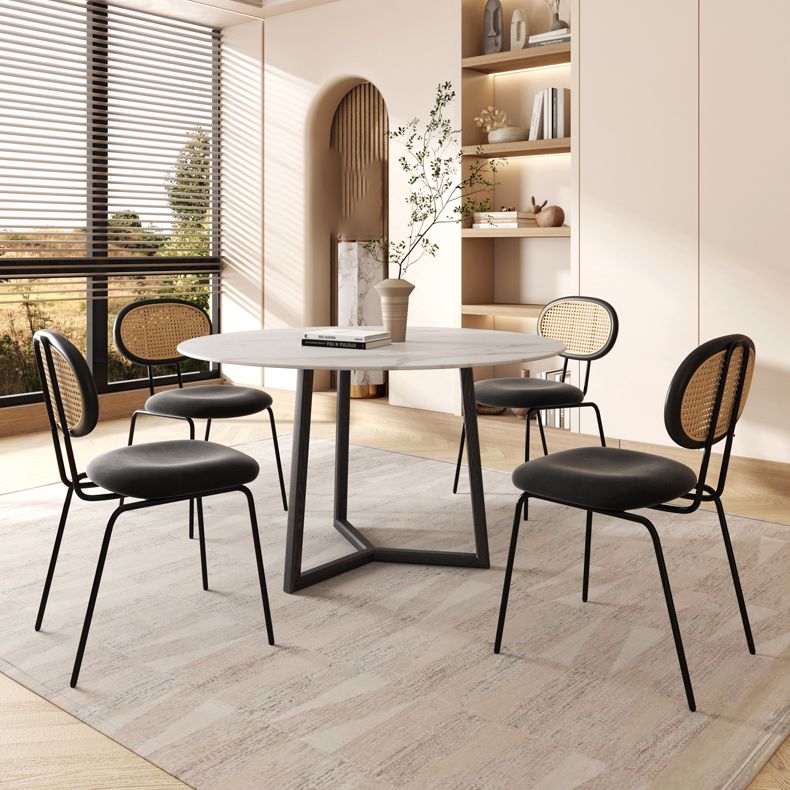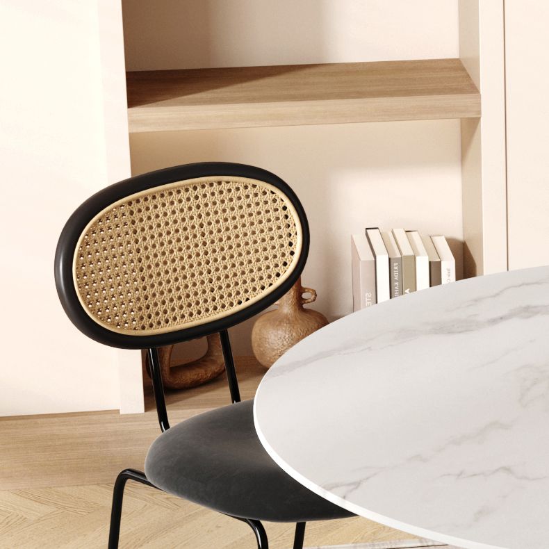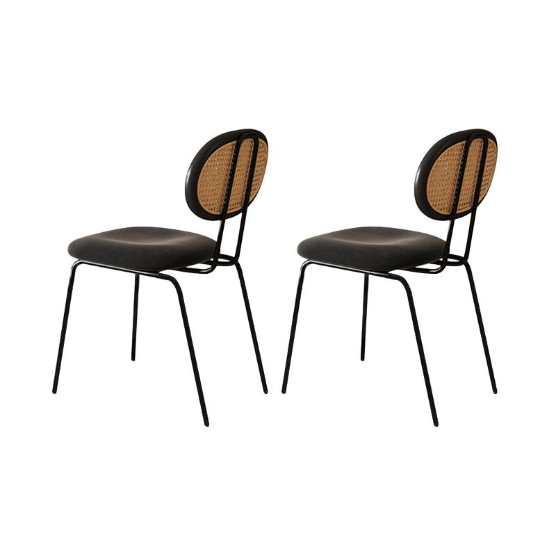 Moderne eenvoudige zijstoel gestoffeerde eetkamerstoel met metalen basis voor keuken