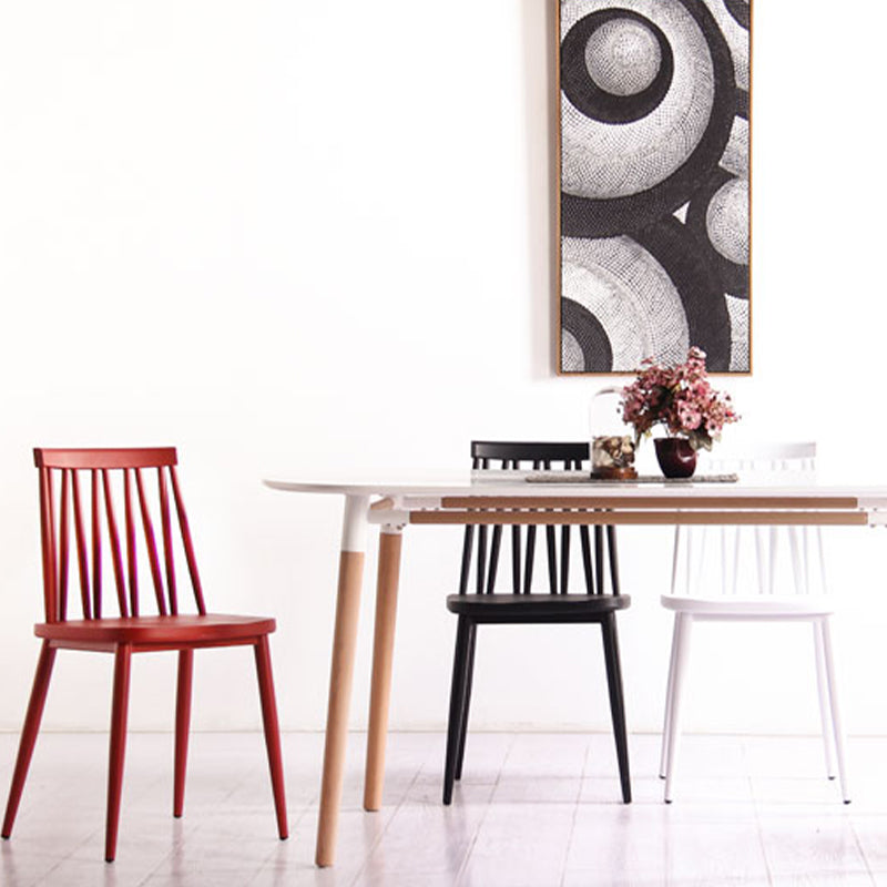 Noordse metalen eetstoelen Slat achter armloze stoelen voor eetkamer
