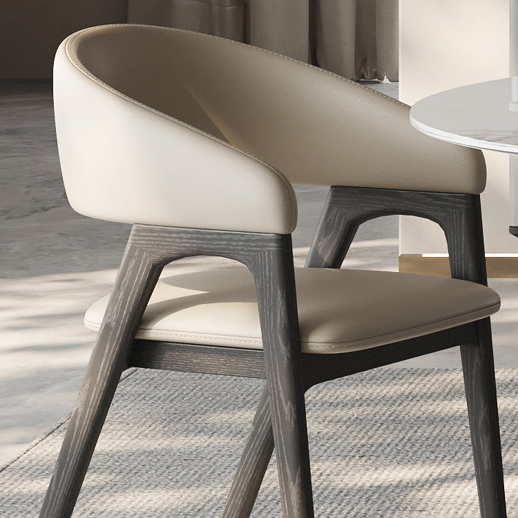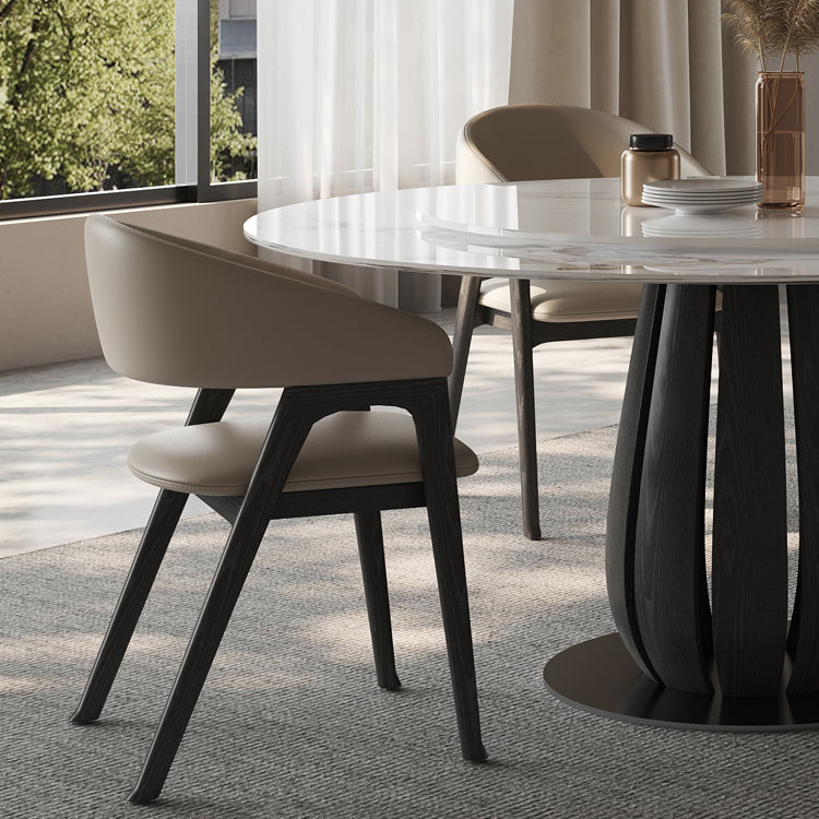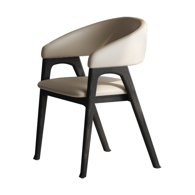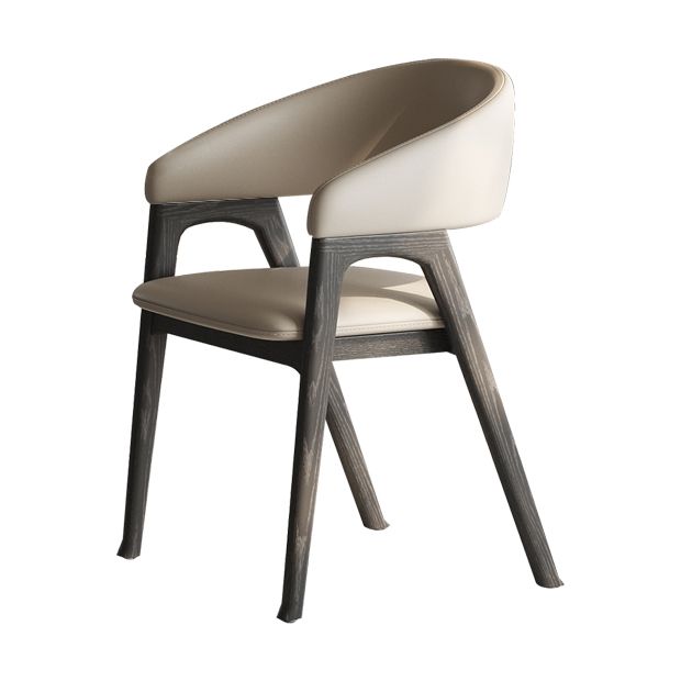 Open rugarm gestoffeerd en massief houten dineren accentstoel