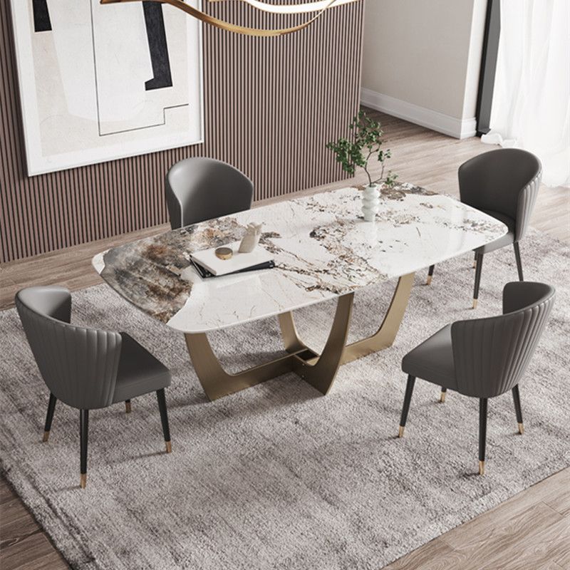 Productcollectie: Goud 63"L x 35"W Goud 71"L x 35"W 6 grijze stoelen 5 stuks: tafel 4 stoelen