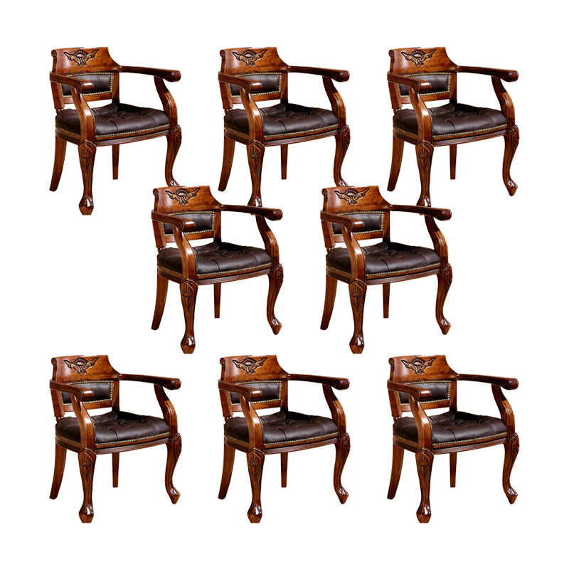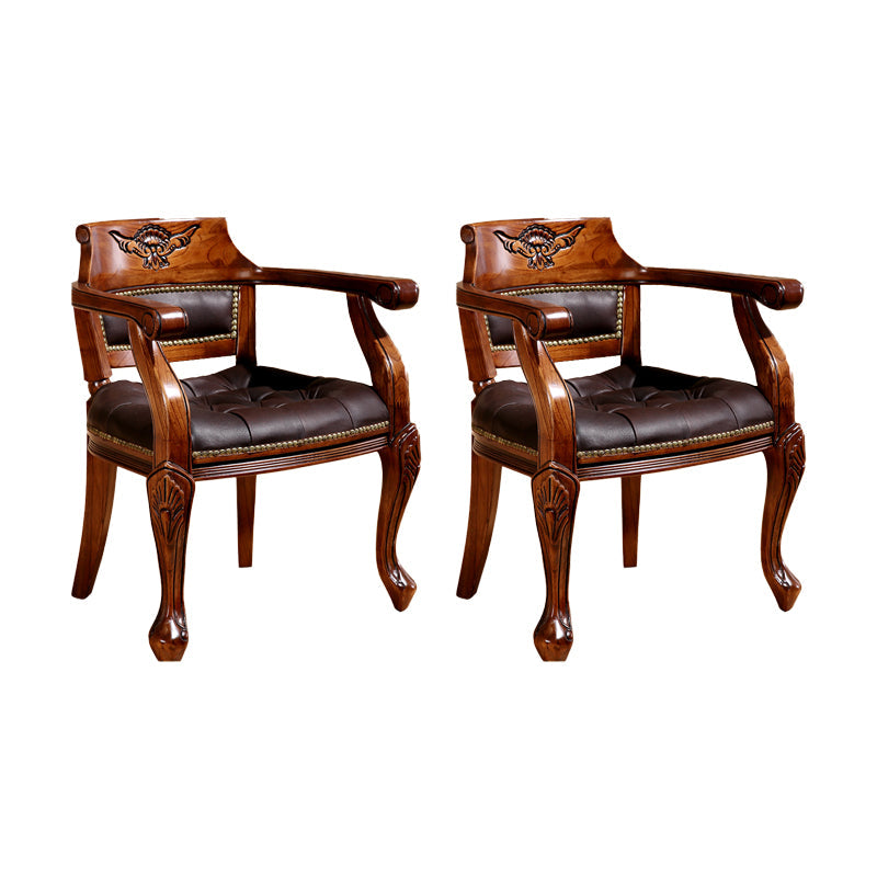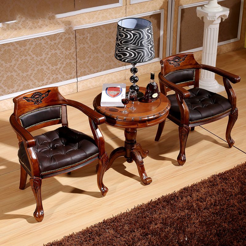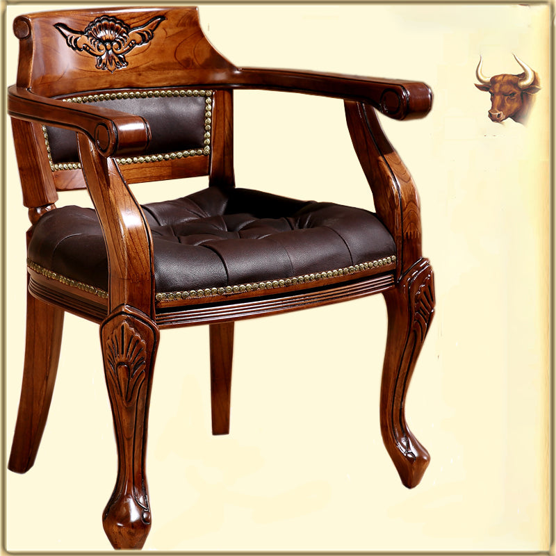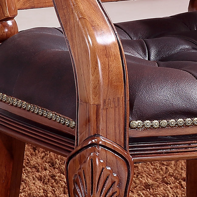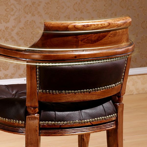 Rustieke stijl eetkamerstoel lederen stoel met houten basis voor thuis