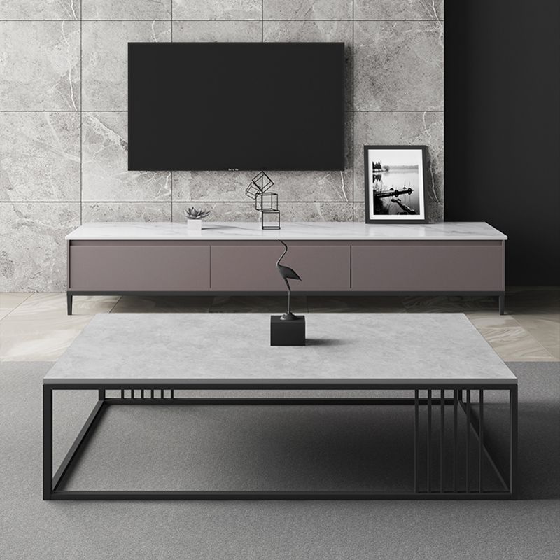Enkele salontafel leisteen rechthoekige koffiecocktailtafel licht grijs