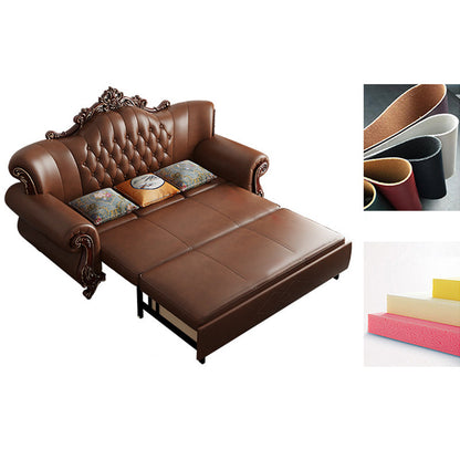 Traditional Leather Futon Sleeper Sofa in Brown Sofa Bed with Storage Clearhalo 'furn' 'furn_futons' 'Furniture' 'Futons & Daybeds' 'Futons' 'Living Room Furniture' 1200x1200_a8c363d9-e946-4823-914f-48095e880a83