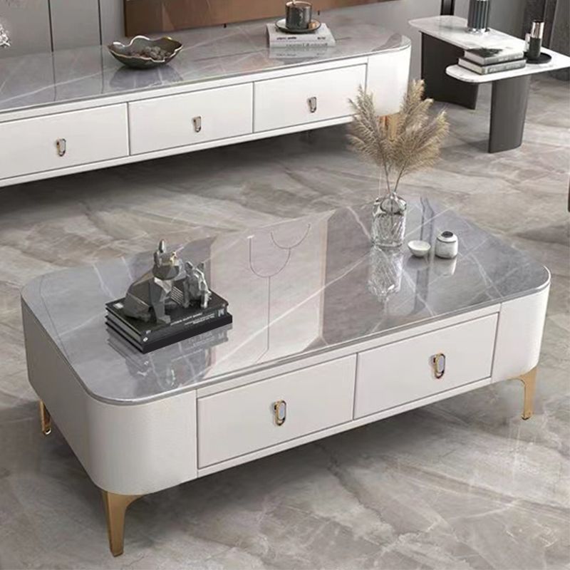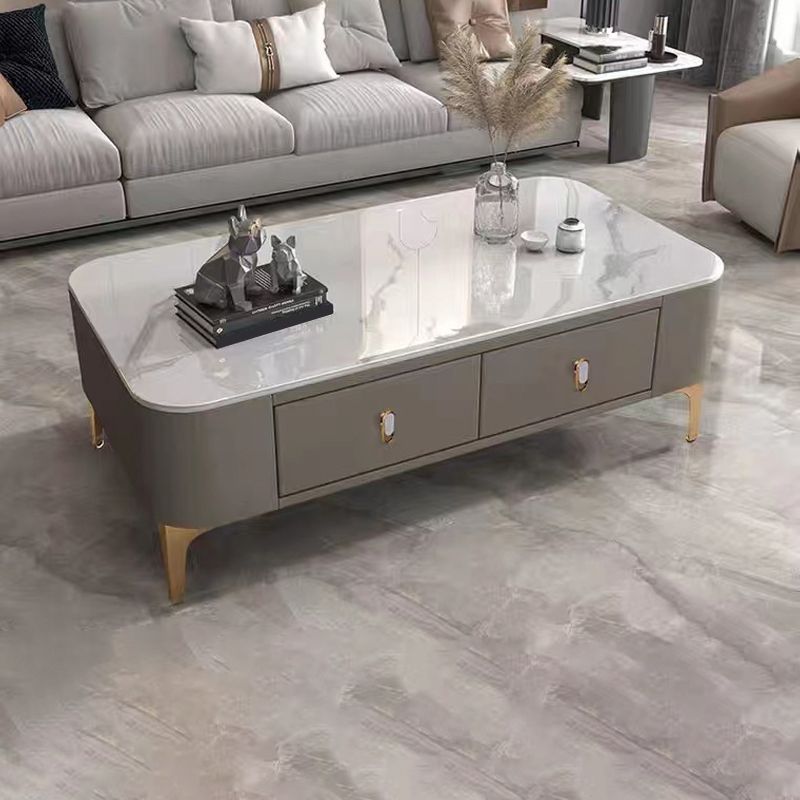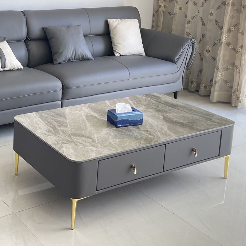 Driehoek leisteen salontafel glamour 4 poten met 2 opbergladen