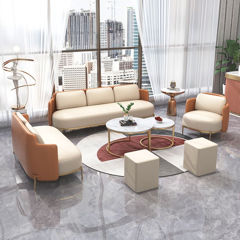 Tuxedo arm Standaard bankleer en ijzeren zitplaatsen in beige voor bonusruimte