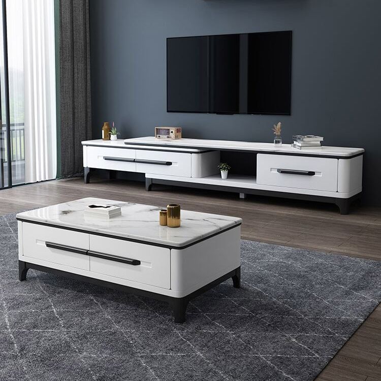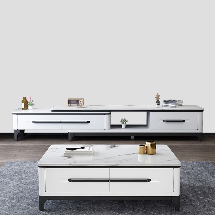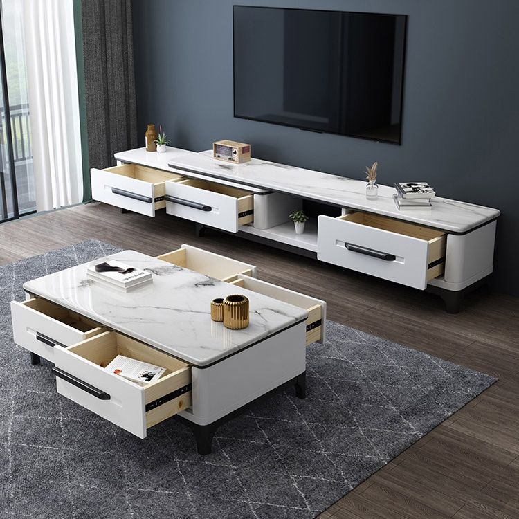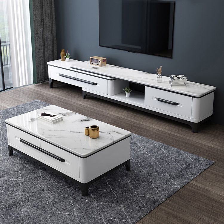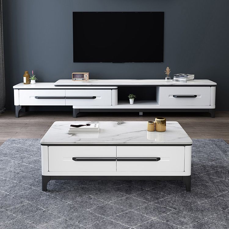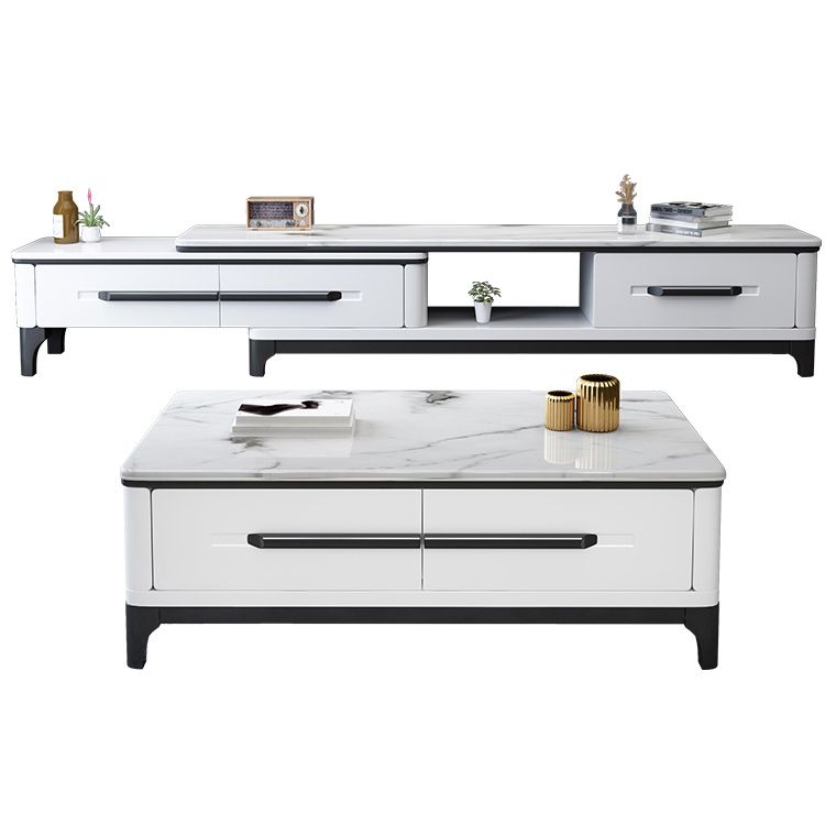 Wit eigentijdse rechthoekige marmeren koffiecocktailtafel met opslag