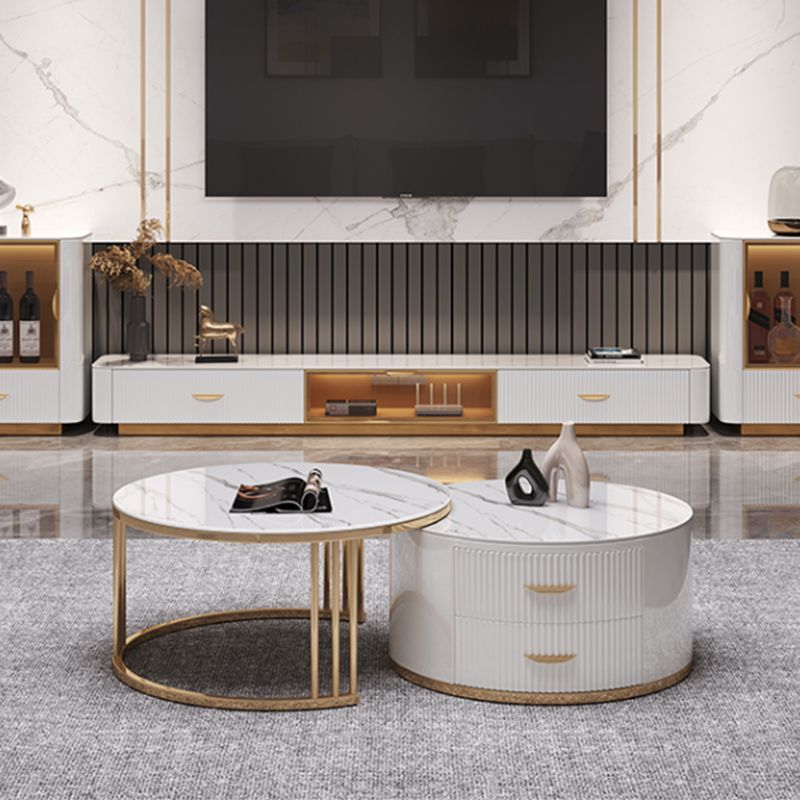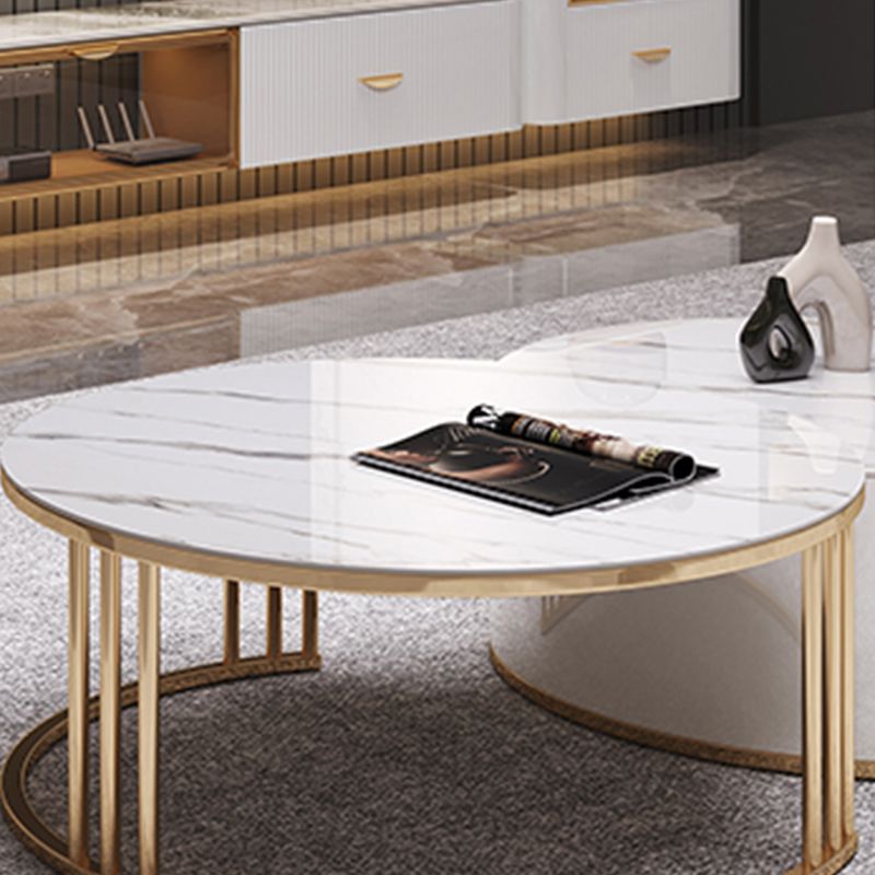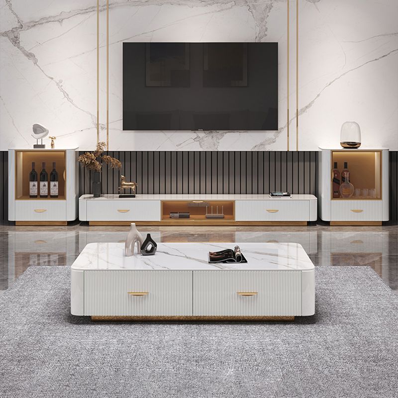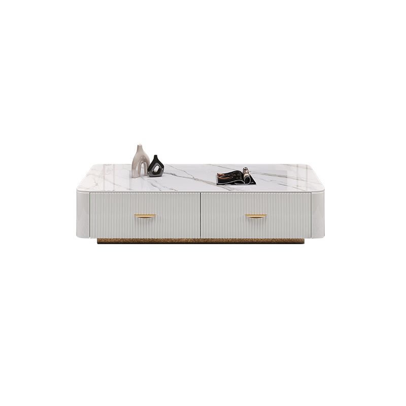 Witte marmeren bovenste salontafel met metalen blokbasis en stogage