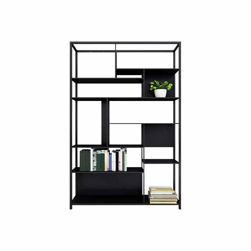 10" W Open Storage Bookcase Black / Gold / White Metal Bookshelf with Shelves