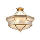 14"/18"/23.5" Wide 3/4/6 Lights Frosted Glass Ceiling Mounted Fixture Vintage Brass Geometric Living Room Semi Mount Lighting