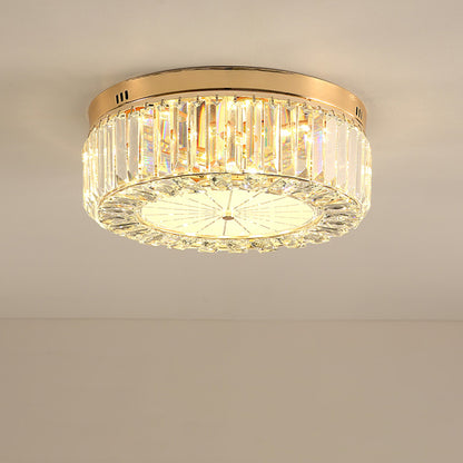 16"/19.5" Wide Drum LED Flushmount Modern Clear Prismatic Optical Crystal Living Room Close to Ceiling Lighting in Gold Clearhalo 'Ceiling Lights' 'Close To Ceiling Lights' 'Close to ceiling' 'Flush mount' Lighting' 1430966