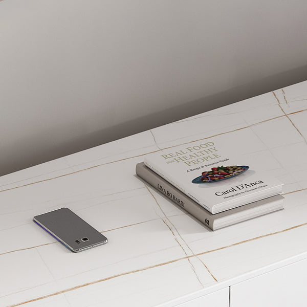 2 Drawers Stone Office Desk Glam 29.53" Tall Writing Desk with Iron Legs