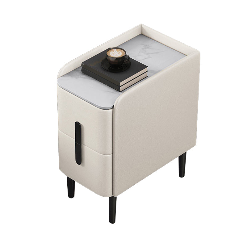 22 Inch H Night Table 2-Drawer Faux Leather Stone Top Legs Included Nightstand