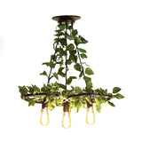 3/6 Heads Plant Ceiling Chandelier with Bare Bulb Metal Industrial Restaurant LED Pendant Light in Green