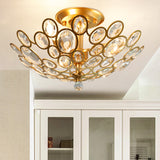3-Bulb Clear Faceted Crystal Flushmount Retro Silver/Gold Bubble Ring Kitchen Semi Flush Chandelier Lighting Gold Clearhalo 'Ceiling Lights' 'Close To Ceiling Lights' 'Close to ceiling' 'Semi-flushmount' Lighting' 1908900