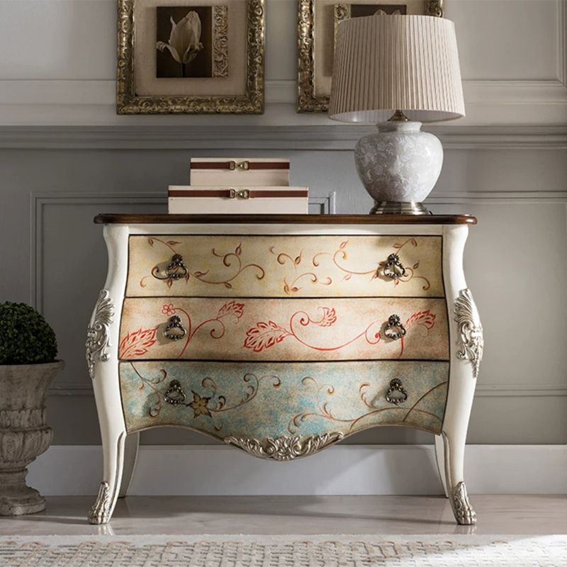3 - Drawer Accent Cabinet Industrial Solid Wood Cabinet, Distressed Wood