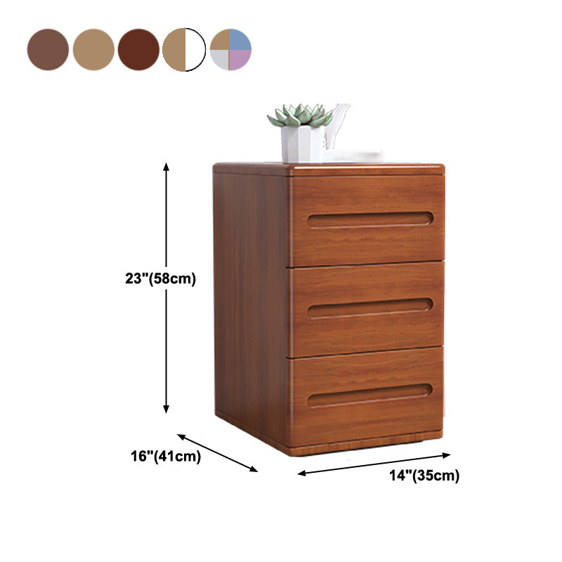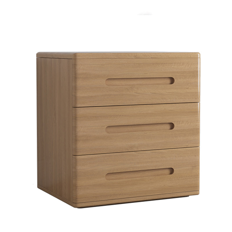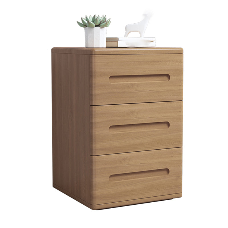 3-Drawer Solid Wood Nightstand Rubber Wood Modern Bedside Cabinet