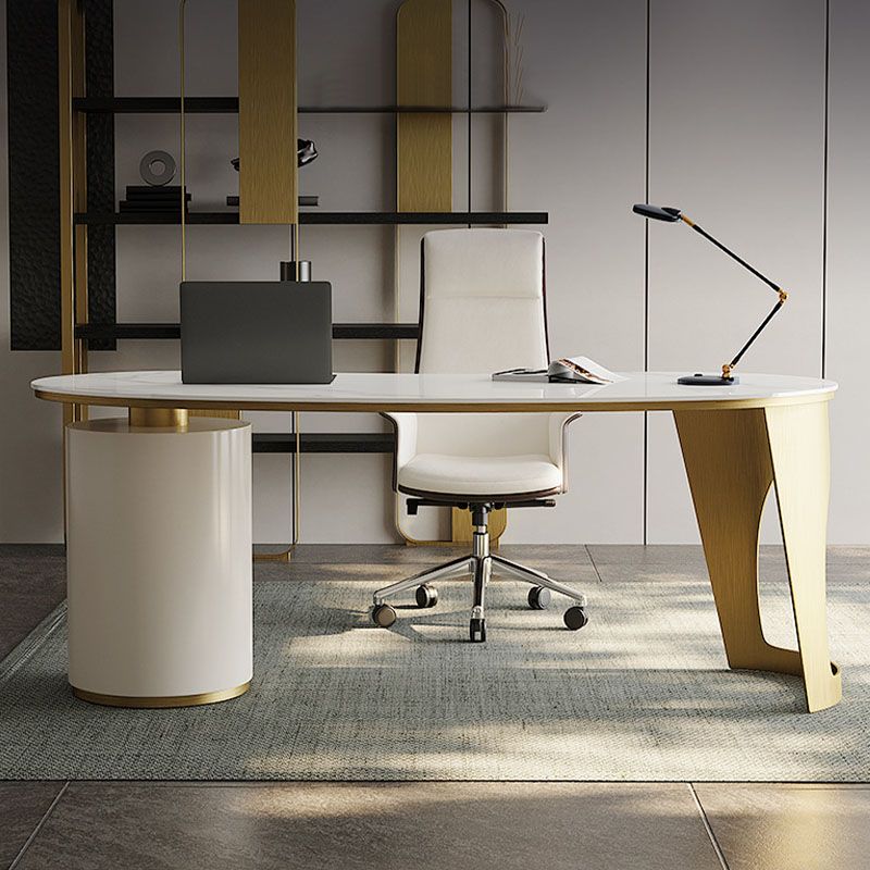 3 Drawers 27.56" W Office Desk Glam Pedestal Base Writing Desk