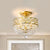 3 Heads Light Fixture with Dropped Ball Crystal Contemporary Porch Semi-Flush Mount in Gold