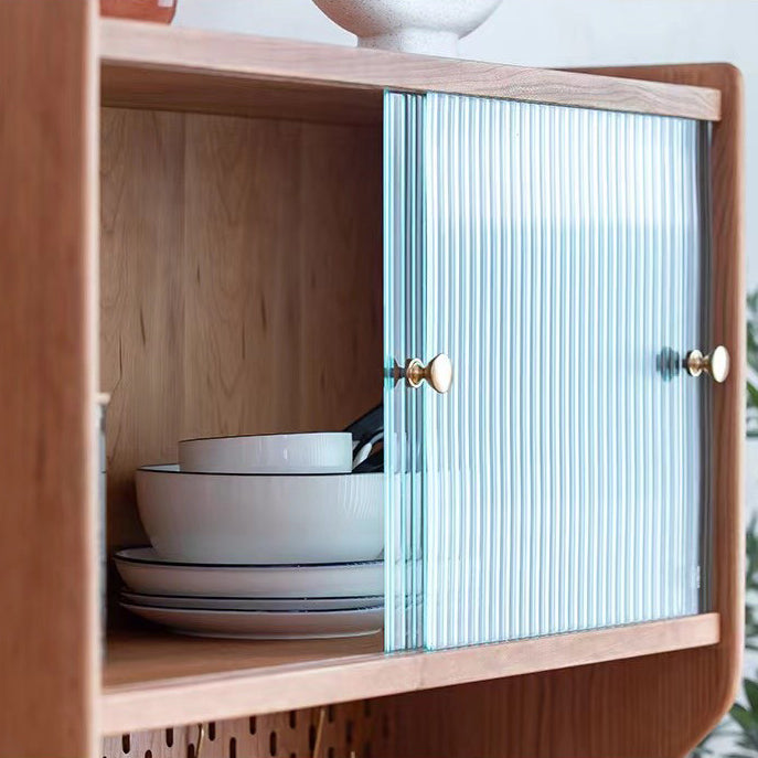 4 Doors 1 Drawer Sideboard Pine Wood Glam Style Cupboard for Dining Room