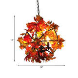 4 Heads Hanging Chandelier Vintage Globe Cage Pendant Light Kit with Red Maple Leaf Deco
