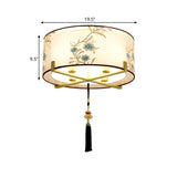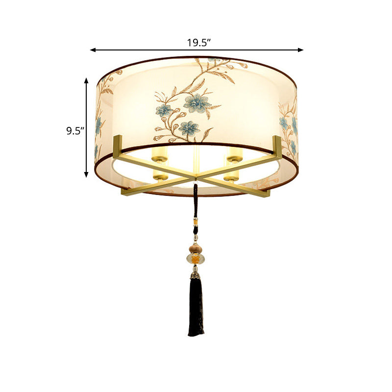 4 Lights Drum Flush Mount Lamp Traditional Style White Fabric Flush Light Fixture